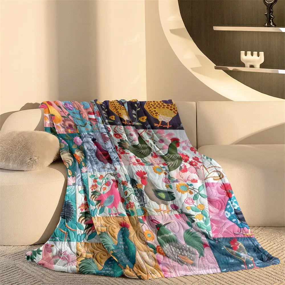 Cute Patchwork Chicken Pattern Blanket, Ultra Soft Flannel Throw Blanket, Shawl Blanket, Small Cover Blanket, Perfect Holiday Gift