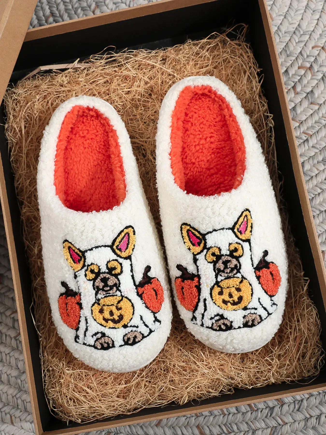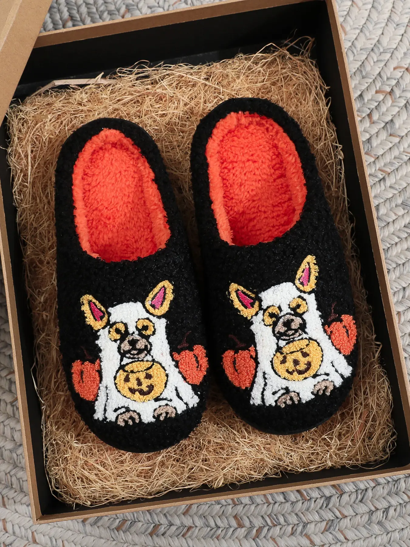 Cute embroidered dog slippers #halloween2025 #spooky #pumpkin #dog #slippers