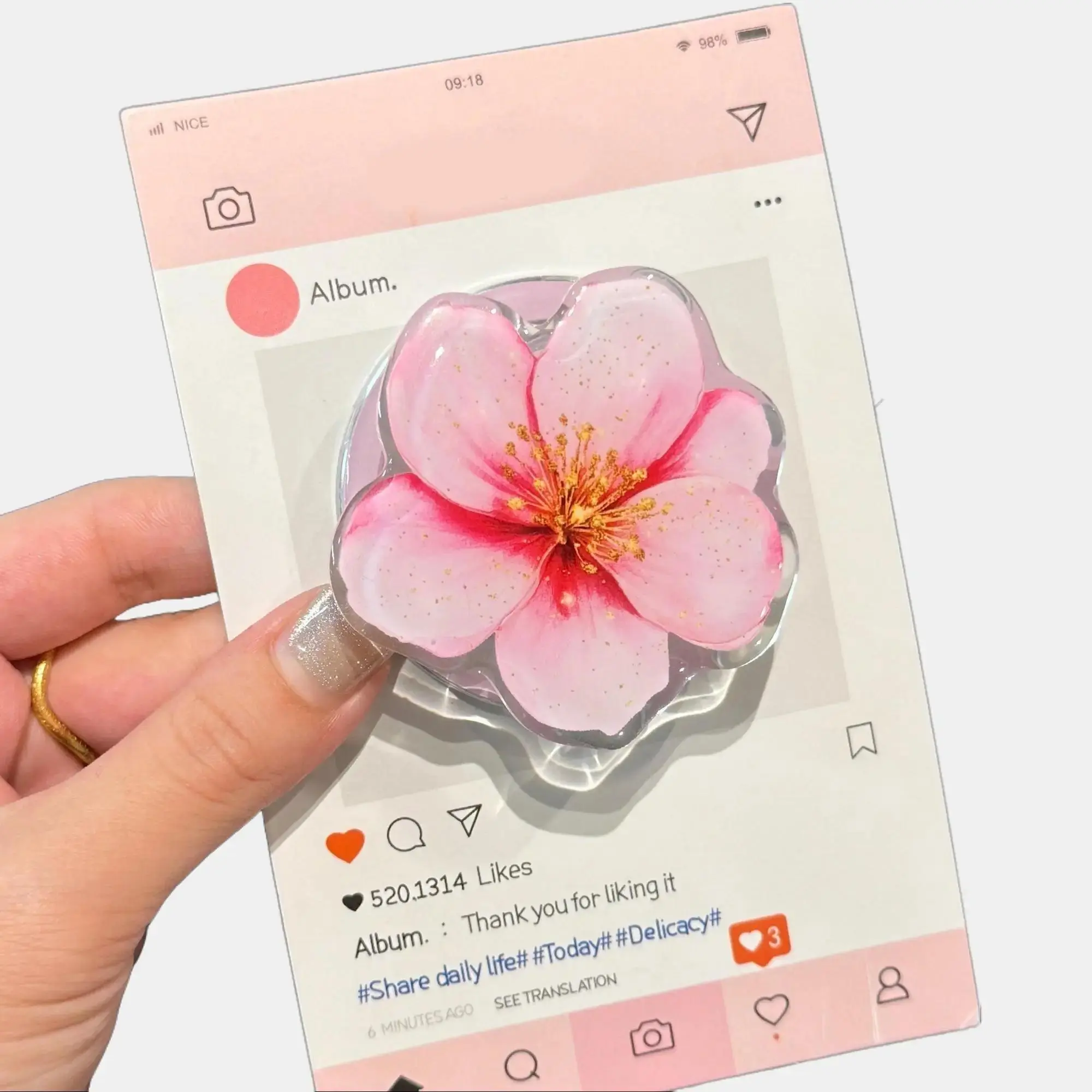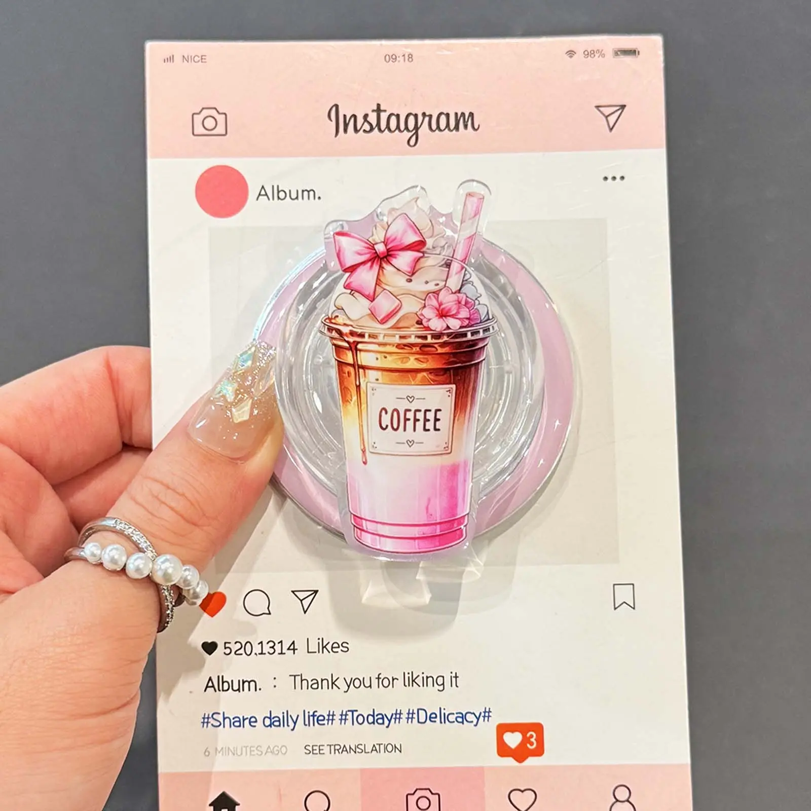 Super cute, but I had to superglue the decal to the grip. It came hanging off the grip and wouldn’t fit back in no matter how many times I tried. After glueing it back together it works perfectly and fits my phone esthetic!!
