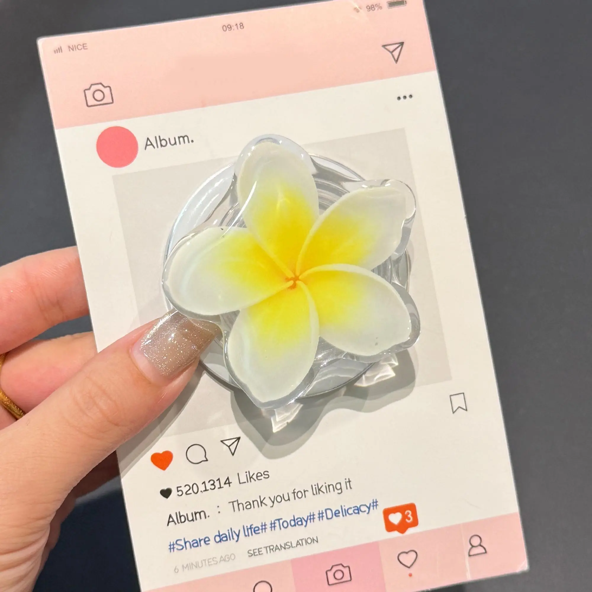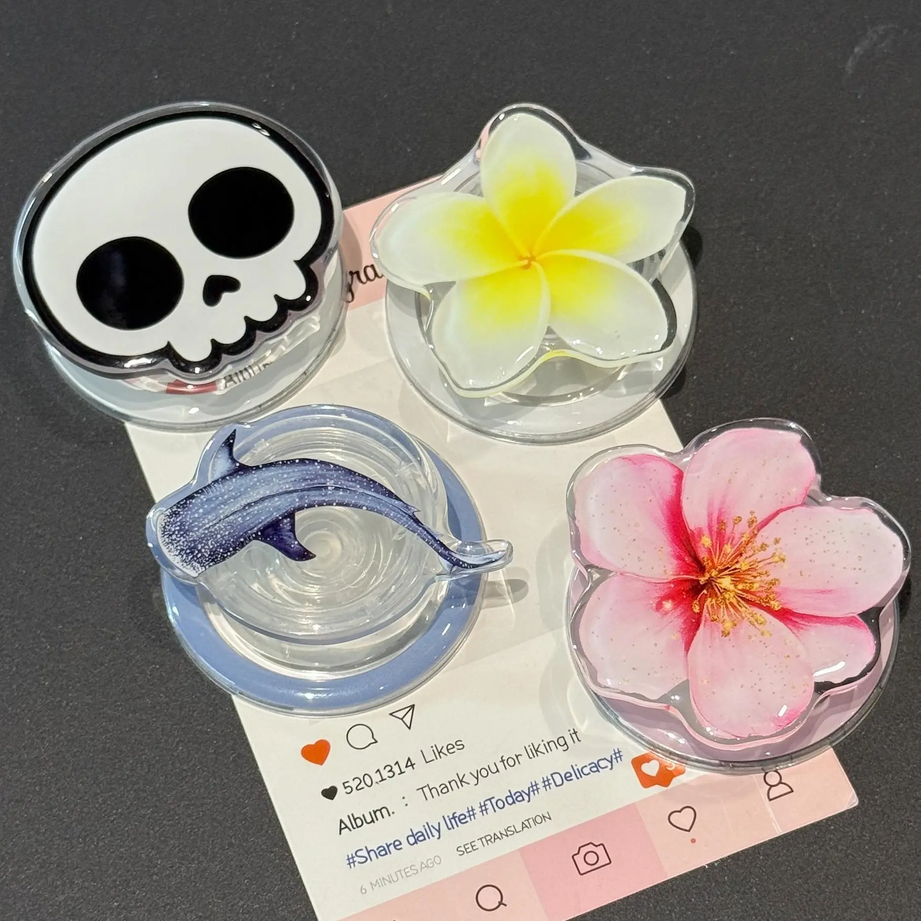 Very cute phone grip except as I was showing someone a video over a plate of spaghetti, it suddenly ungripped (if that’s even a word) and my phone fell into a pile of marinara sauce. Nice product overall but make sure to be careful (and maybe not hold it over a plate of spaghetti or whatever!) 🥲