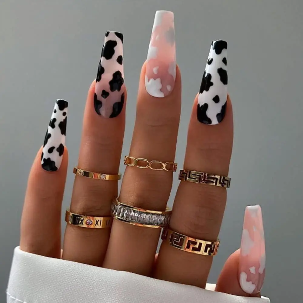 4. [For Wig Package]Cute Press on Nails - Cows Coffin Long Flase Nails Tips Acrylic Full Cover Fake Nails for Women and Girls