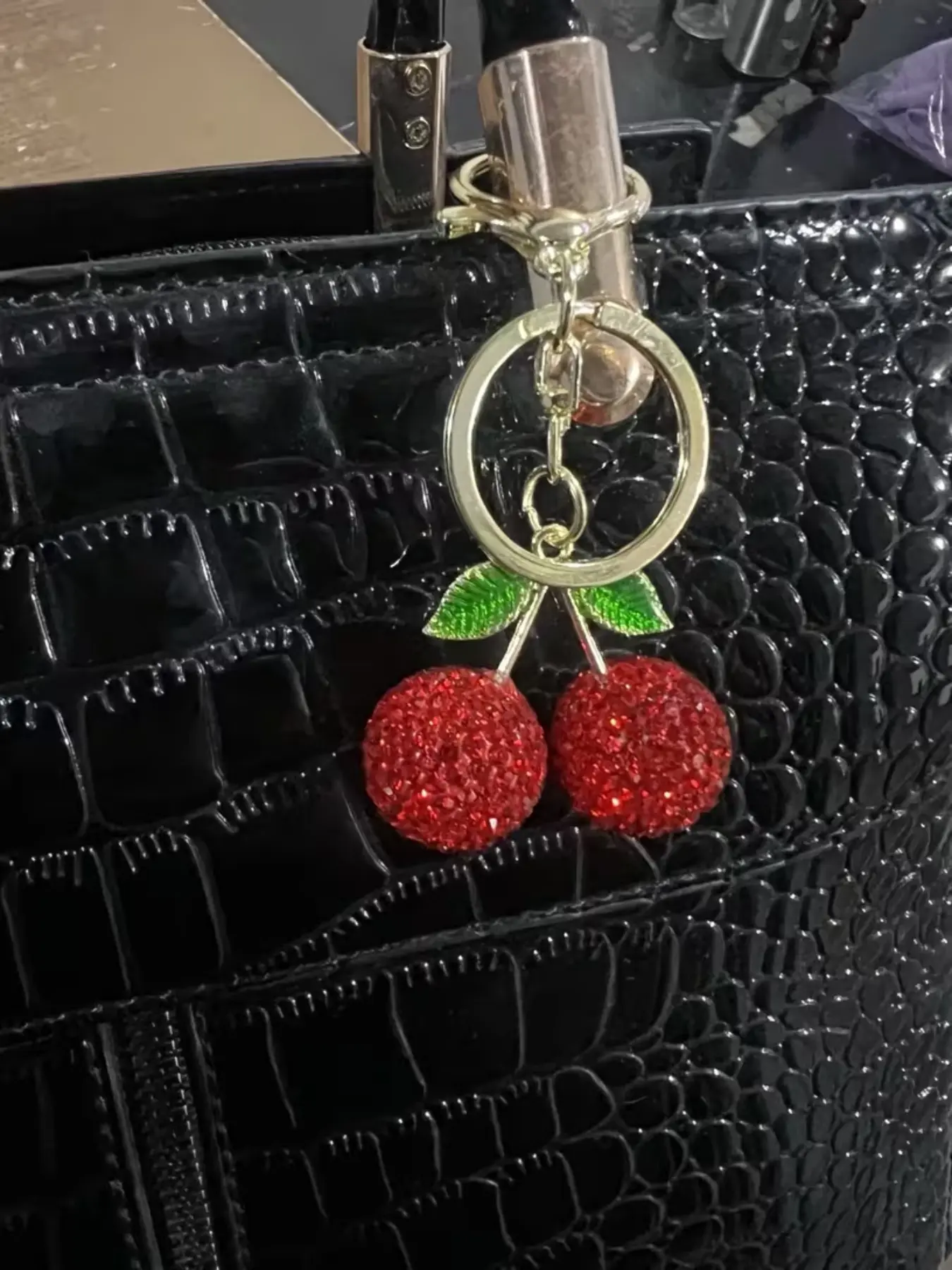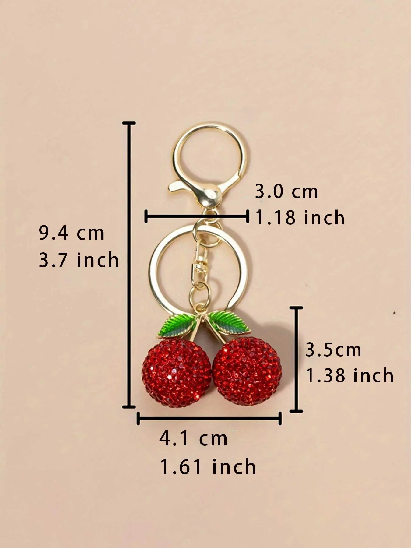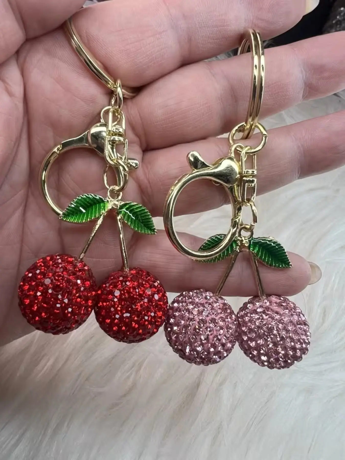 【Charming Cherry Design】: Features a sparkling cherry pendant adorned with glittering rhinestones, offering a unique touch to your keychain.