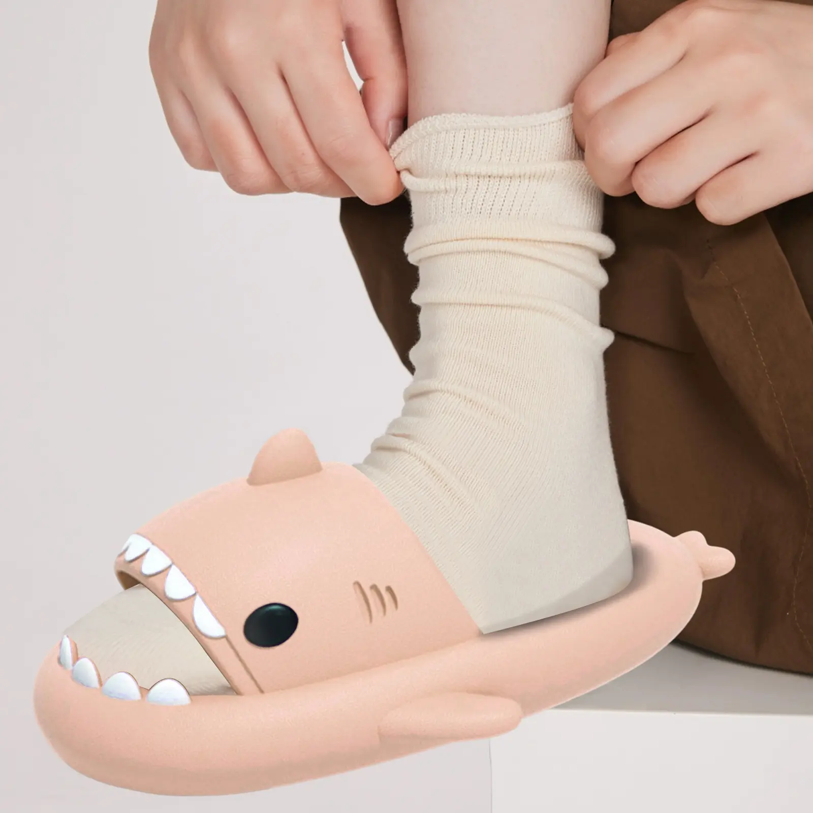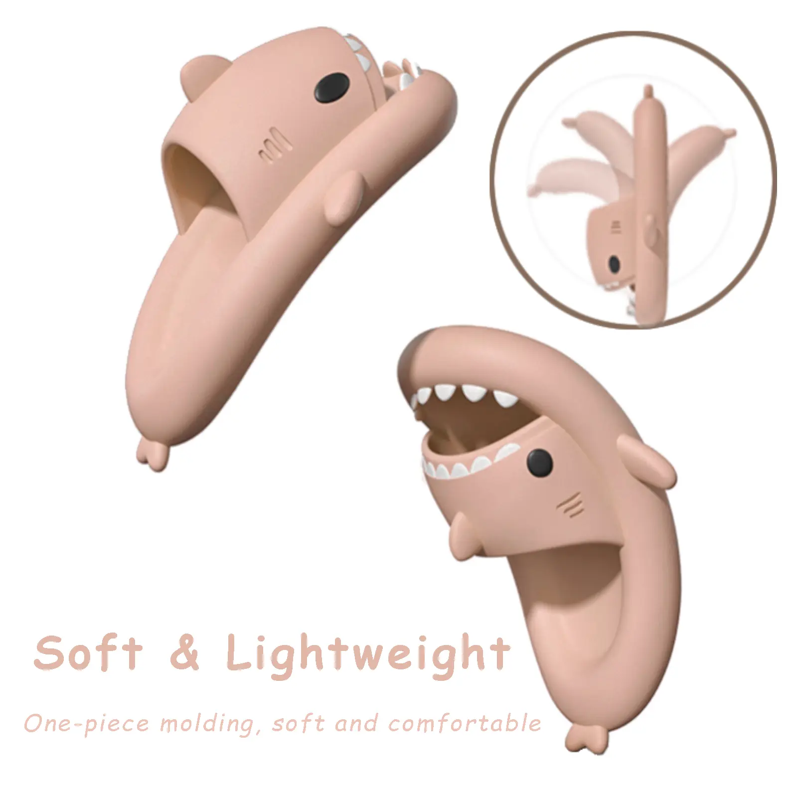 Made of healthy EVA material, these slippers are soft and comfortable. 🦈 They offer good cushioning and elasticity, making them easy to put on and take off. 🦈 The open toe design is breathable, preventing feet from getting hot and sweaty. 🦈