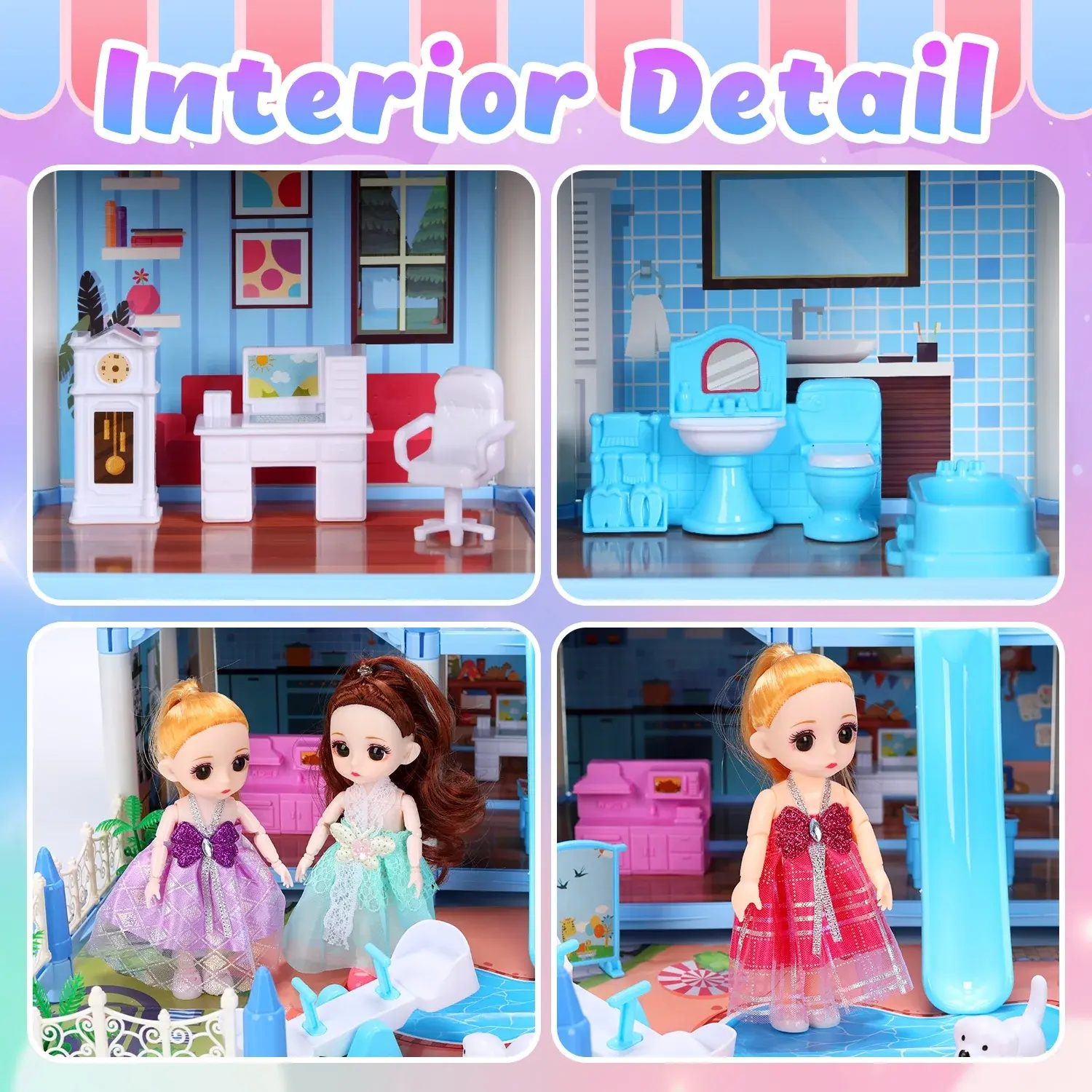 ·Each room in the Princess Castle Doll House has unique home furniture, appliances, slides, and other accessories that can be easily moved and organized. The open design allows your to see the dolls from different perspectives, which increases the richness of the doll house.
