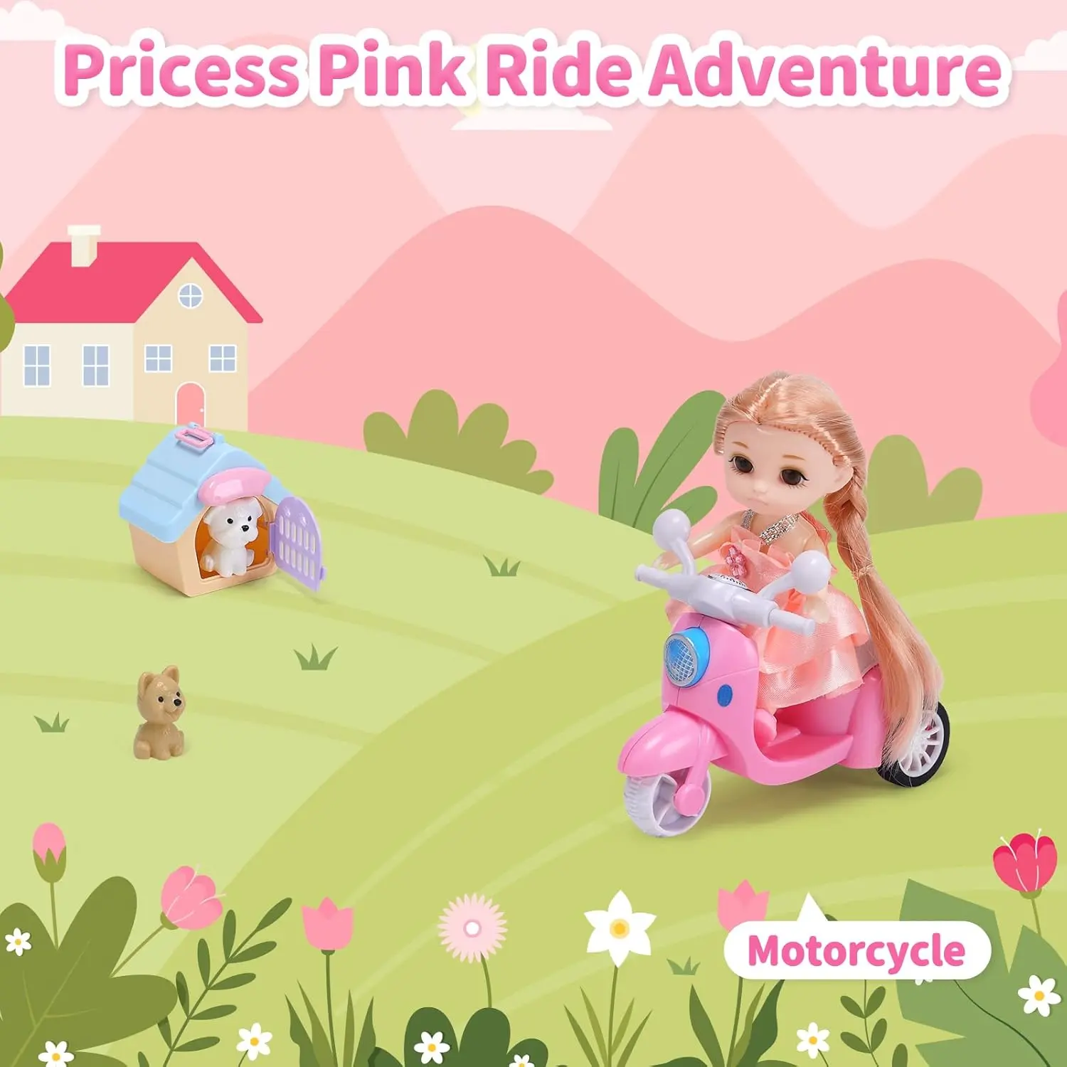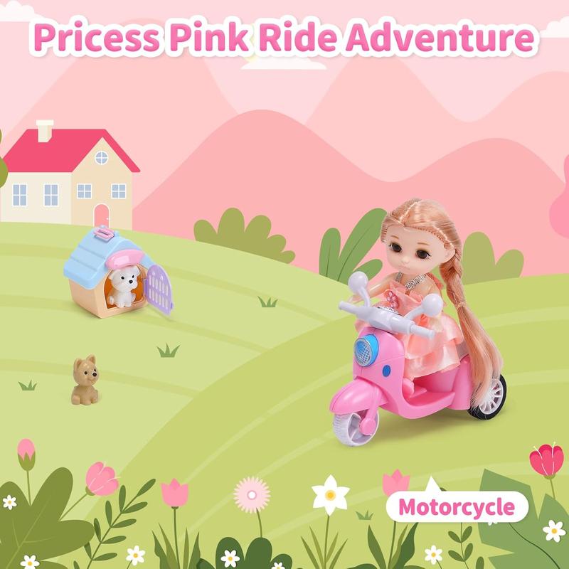 The set comes with a pink motorcycle and a pink doll, plus 2 adorable pets and their cozy pet house. This combination encourages kids to unleash their imagination and creativity, crafting unique stories and scenarios. Whether starting a riding adventure or caring for animal friends, each journey becomes unforgettable.