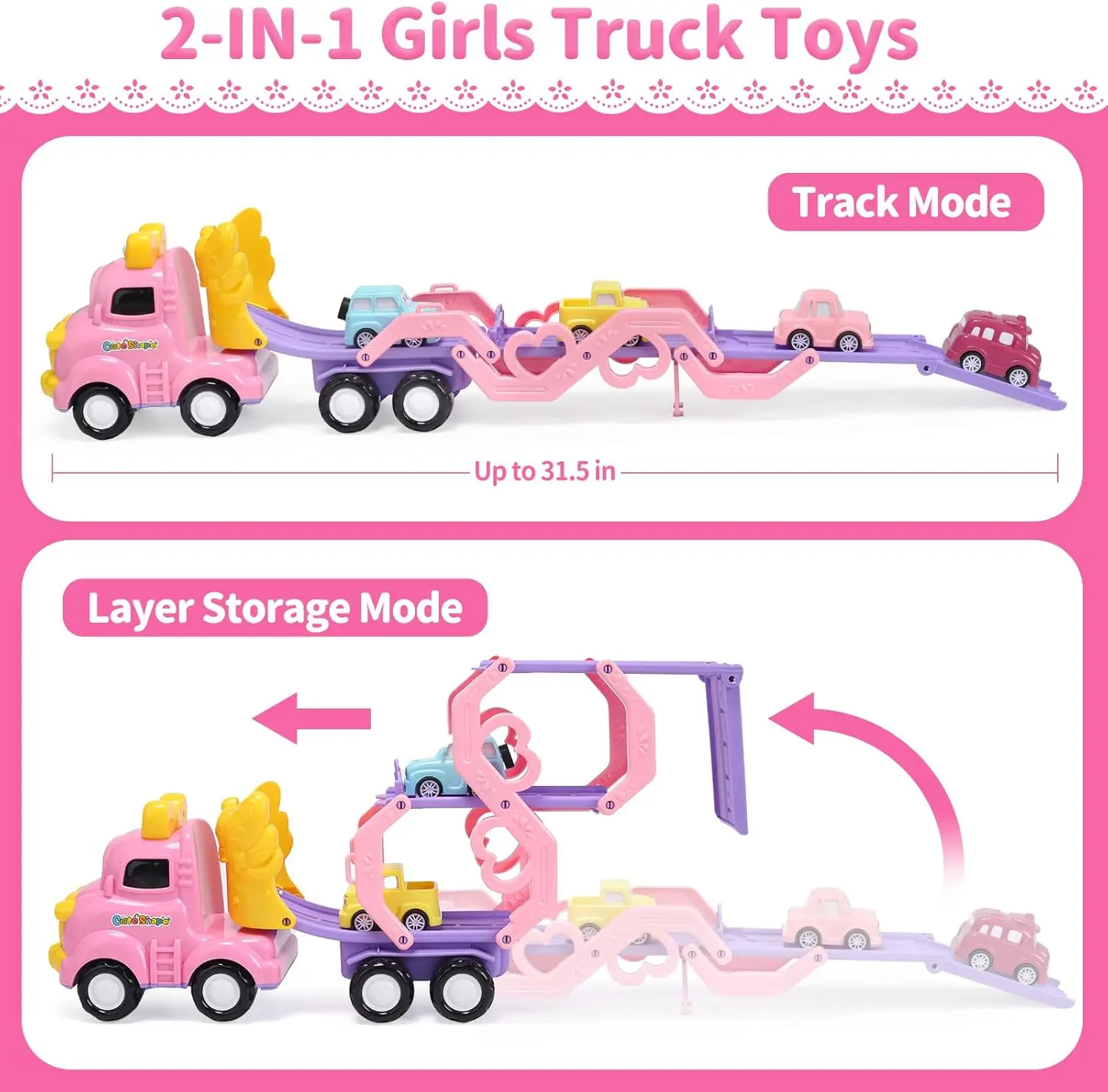 Packaged in a pink princess-themed design, these car toys bring extra joy to your little one's playtime. They make an excellent choice for girls, suitable for various occasions, including holidays, Christmas, and as birthday gifts. With engaging features and a unique design, it will become a treasured part of her playtime adventures.