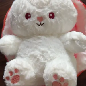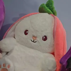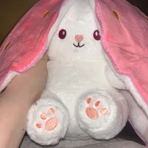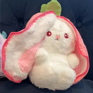 Bought this for my child and it quickly became a favorite. Soft enough for cuddling and holds its shape well. Super cute! My child loves this strawberry bunny plush—perfect size and very kawaii!