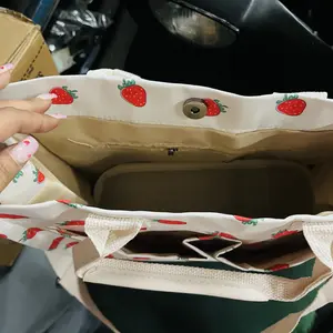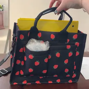 Women's Cute Strawberry Pattern Tote Bag, Fashionable Large Capacity Crossbody Bag for Daily & Work Use, Casual Versatile Commuting Handbag for Women & Girls, Trail Sport Bag