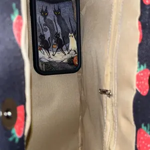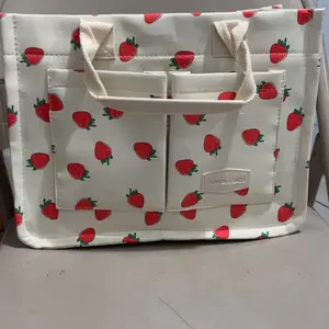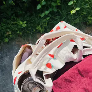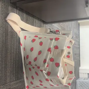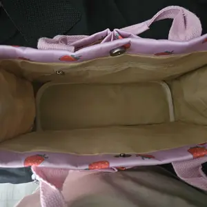 Super spacious and cute. This bag is really well made, it's super strong and has lots of areas to put things. I got the pink strawberry bag and the design is soo cute. Happy with my purchase.