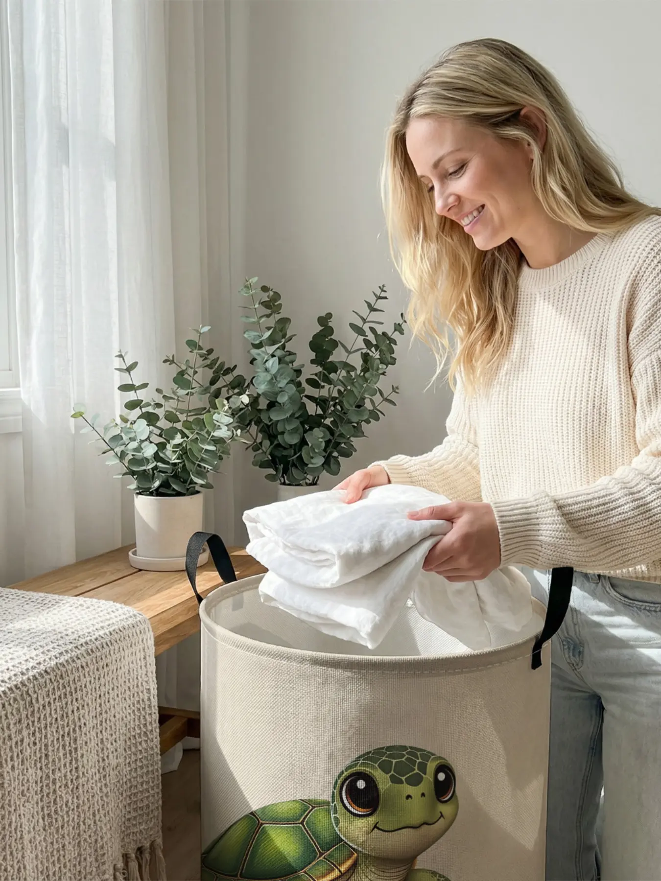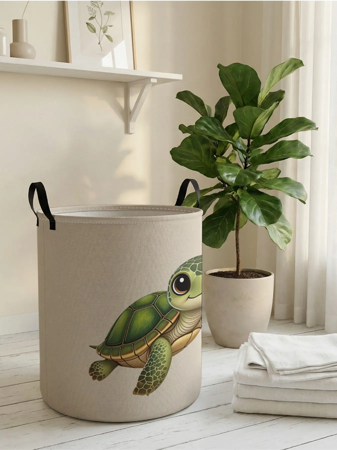 5. 1 piece of cute turtle pattern 2D printed open storage box, double handle reinforcement + foldable storage | dirty laundry storage/toy organization/home decoration all-in-one