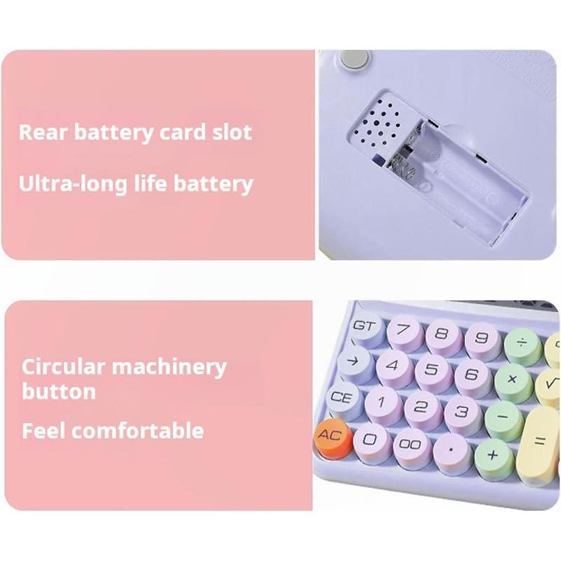 ·Cute Calculator: Our calculator is designed in a typewriter style, it is powered by both batteries and solar power. Even if you don't have any batteries around, you can still use this calculator when there is light. Its simple lines and round keys provide a comfortable typing experience, preventing fatigue even during long-term use.