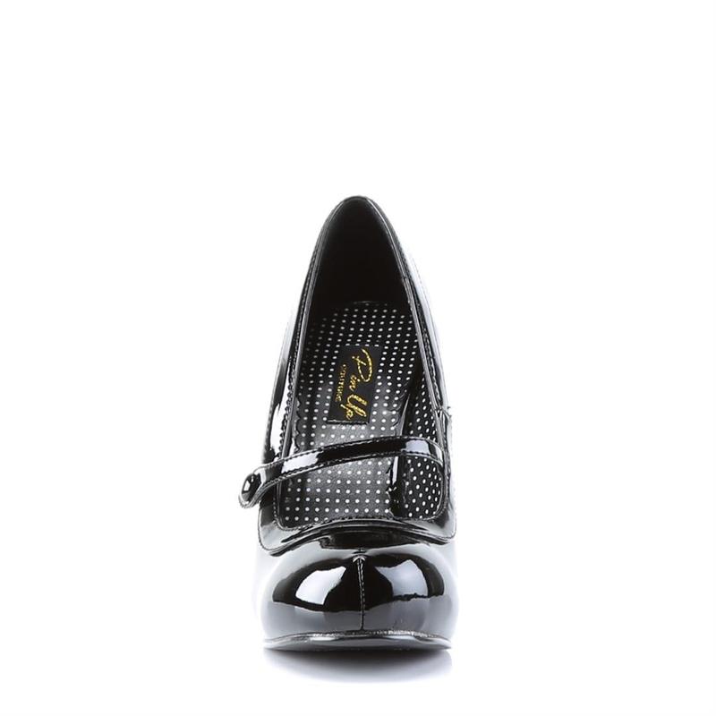 Size 8 pinches majorly! Barely fit with stockings. Size up, these are being returned. Otherwise a very stylish design, have purchased a size up and love it. More narrow in the toe box than the Fabulicious, Fabulicious is smaller toe box than Pink label. They have their own Carry bag but no individual shoe bags like most of pleaser shoes.