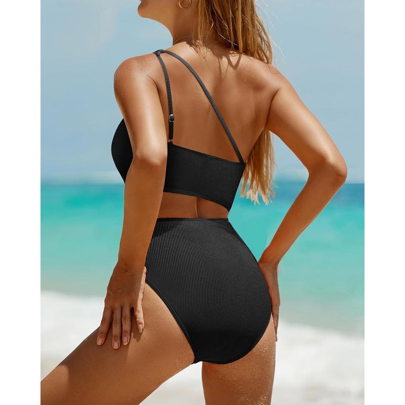 ·Cutout Swimsuit for Women: One piece one shoulder swimsuit featuring chic cutout details at the waist. This asymmetric design offers a stylish, slimming, and flattering look.