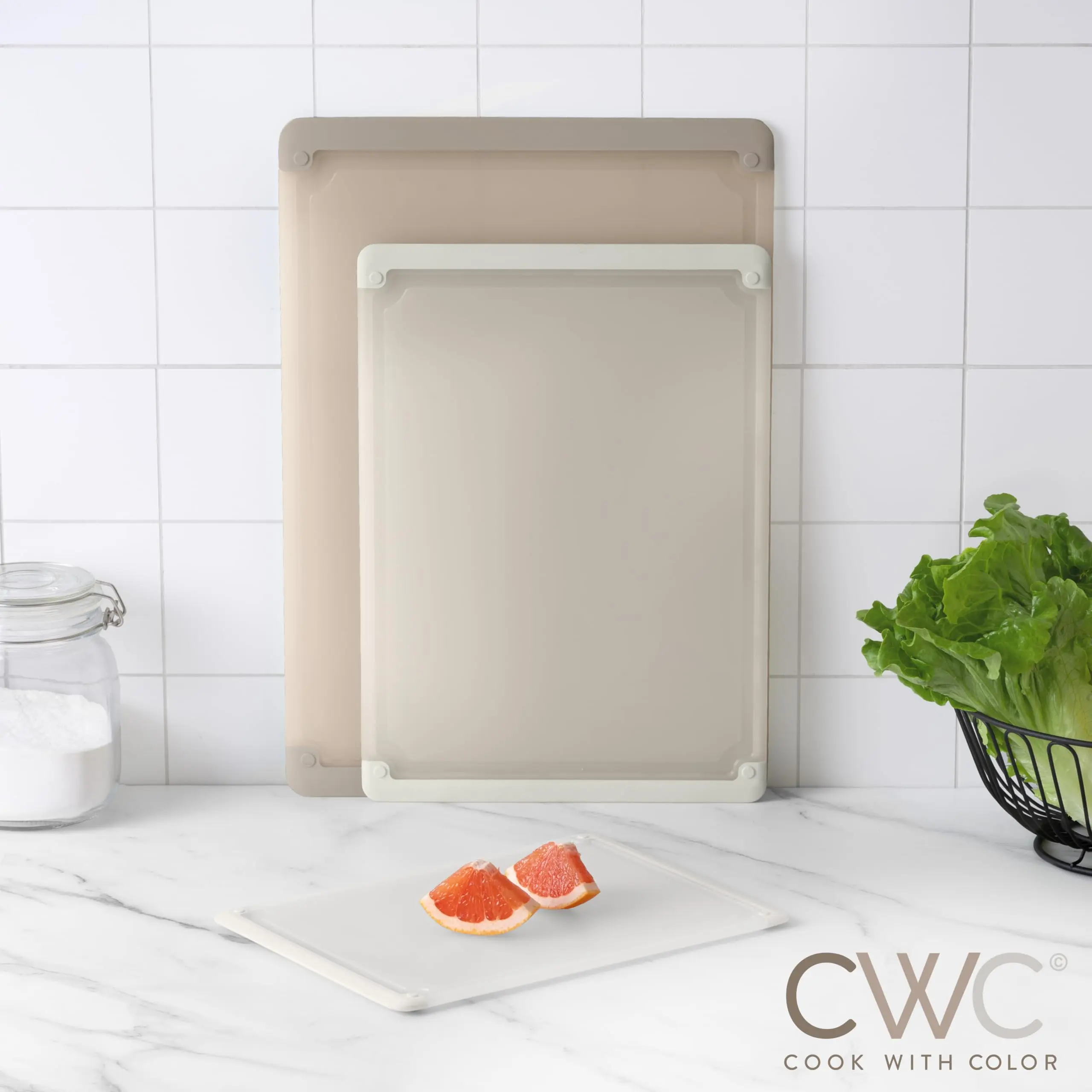 COOK WITH COLOR - We truly care about adding the right style and look in your kitchen. With our products you'll love your kitchen and create the haven you've dreamed of. Our Set of 3 Plastic Cutting Boards are the great kitchen essentials. With this set of 3, there is a cutting board for everything. The small, medium and large sizes are great for meats, fish, vegetables, fruit and cheeses. Safety and Health are a big concern for us. Each BPA free hard plastic cutting board for kitchens feature TPR edges to ensure a non slip board. The hard plastic surface will keep your knives sharp, which is a big concern for experienced cooks like you! Beautiful styles in trendy colors will help you create the kitchen design you absolutely love. 100% CUSTOMER SATISFACTION GUARANTEE: At Cook with Color our number one goal is customer satisfaction. Please do not hesitate to reach out to us with any issues, questions or comments so we can ensure that your Cook with Color order experience adds just the right color and taste!