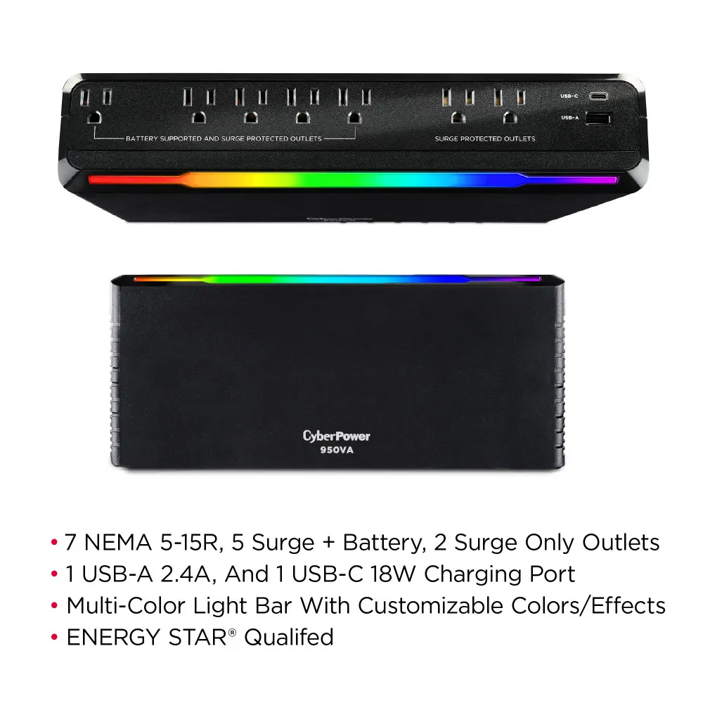 ·Outlets: 7 (2 surge only, 5 surge + battery backup)
