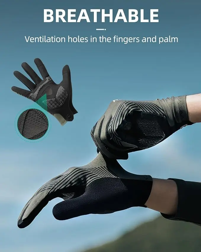 ·Breathable & Comfortable: These bike gloves feature ventilation holes in the fingers and palm to keep your hands dry and comfortable. The holes allow sweat and heat to escape, ensuring a more enjoyable riding experience.