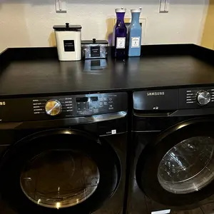 Revolutionize small spaces with this 54" washer-dryer countertop featuring a protective raised edge to contain spills and secure appliances. Doubles as a multi-functional workspace for meal prep, folding, or serving. The sleek minimalist design in versatile finishes blends with any decor. Perfect for apartments, dorms, or compact homes – drop into place instantly for immediate utility!