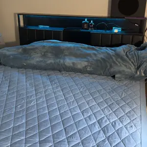 Are you still searching for a satisfactory bed frame? Please upgrade your bedroom with our stylish and durable bed frame. This bed frame combines engineered wood and metal to ensure long-lasting stability and support. Equipped with colorful LED light strips and built-in sockets, with a soft backrest and spacious storage space, this bed frame perfectly blends functionality and modern design, making it a stylish and practical addition to any bedroom.