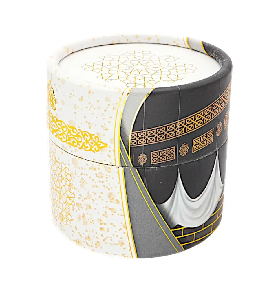 Cylinder Gift Box Set with Mini Quran & Prayer Bead - Kaba White A beautiful and compact Islamic gift set designed with elegance and devotion in mind. This luxurious set includes a mini Quran with a black velvet cover adorned with gold "Allah" calligraphy, paired with matching tasbih (prayer beads). The set is presented in a round black and gold keepsake box featuring intricate Ottoman-inspired patterns - perfect for gifting or personal reflection. This stunning piece serves as a heartfelt gift for Ramadan, Eid, weddings, or any special occasion. WHY WE LOVE IT A small yet meaningful set that combines beauty, reverence, and craftsmanship. The golden detailing and velvet finish add a sense of luxury, making it a memorable keepsake. FEATURES: Mini Quran with black velvet cover and acrylic gold "Allah" calligraphy Matching 99-bead tasbih with "waw" & tassel Round decorative gift box with Ottoman-style gold pattern Perfect for gifting on Ramadan, Eid, or special Islamic occasions Approximate Dimensions: Box: 3 in (7.8 cm) diameter × 2.9 in (7.3 cm) height Mini Quran: 2 x 2.5 in (5.8 x 4.5 cm) Made in Turkey