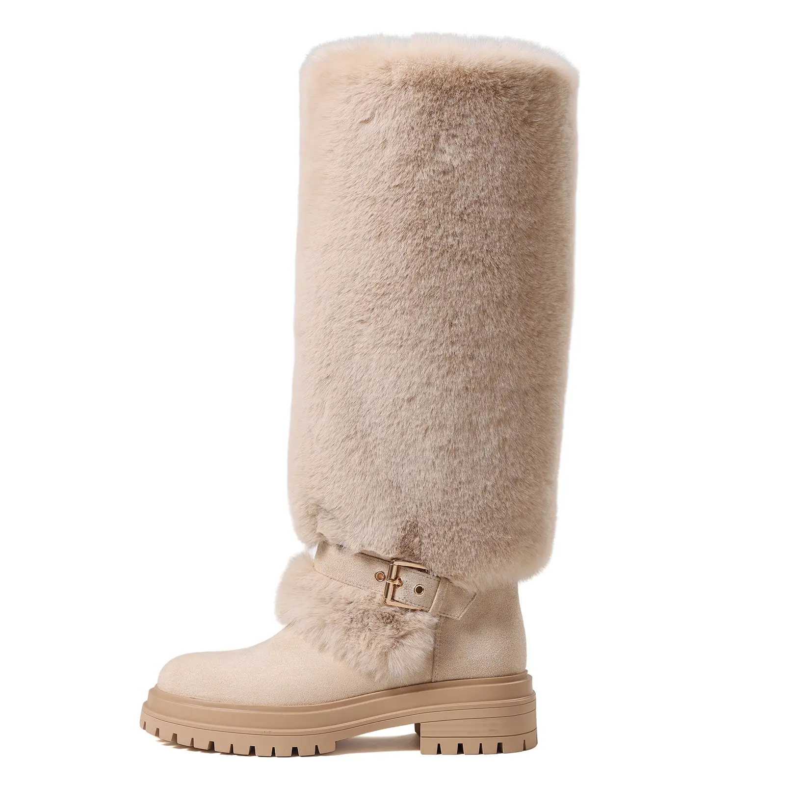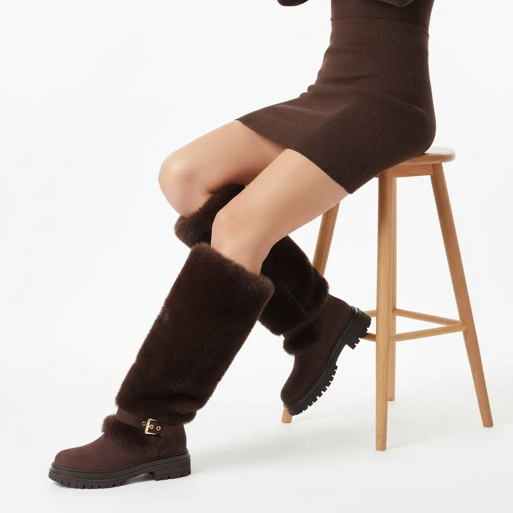 The fur is soft and good quality, I usually wear a 6.5 I got a 7 and I feel like I could use a 7.5. Not big calf friendly. Iâm 165 lbs and my calfâs are a bit thick and there is NO give so keep that in mind. All in all itâs cute