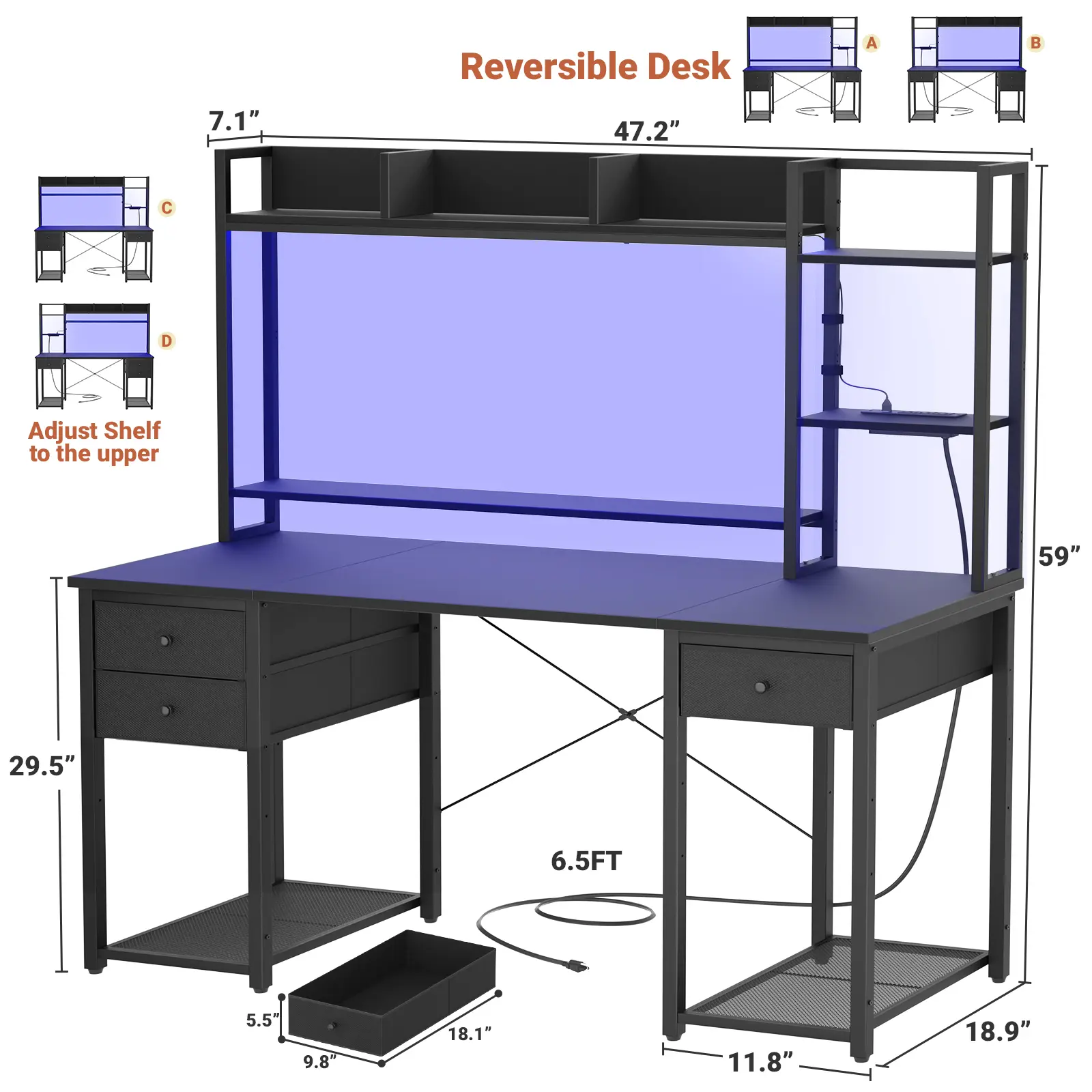 -Transform your gaming setup with an LED gaming desk, offering over 60,000 colors and various flashing modes for a personalized and visually immersive experience.