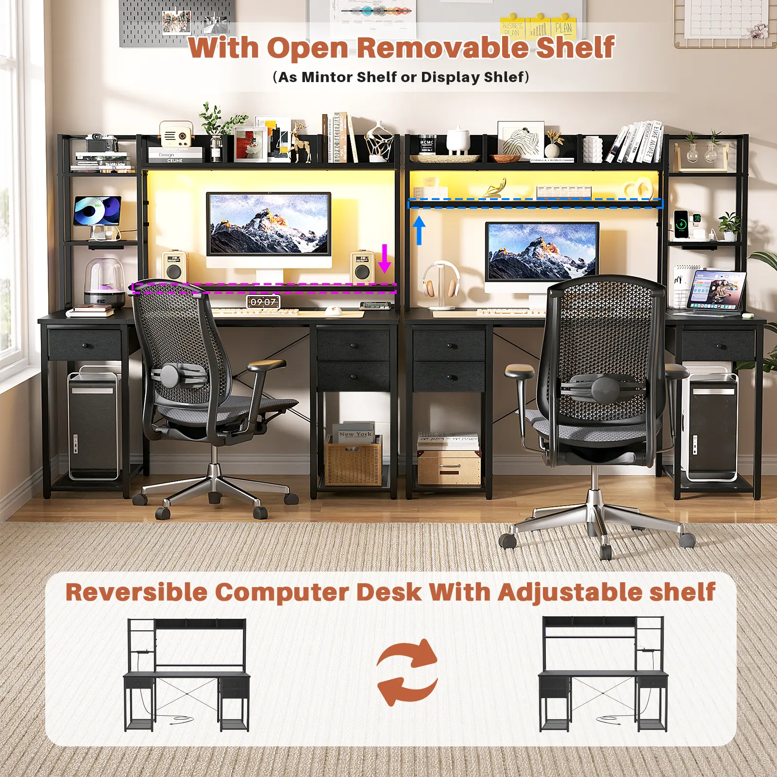 ·Desk with Tall Hutch for Versatile StorageEffortlessly organize your space with a spacious bookshelf hutch, providing ample room for books, decor, and essentials.