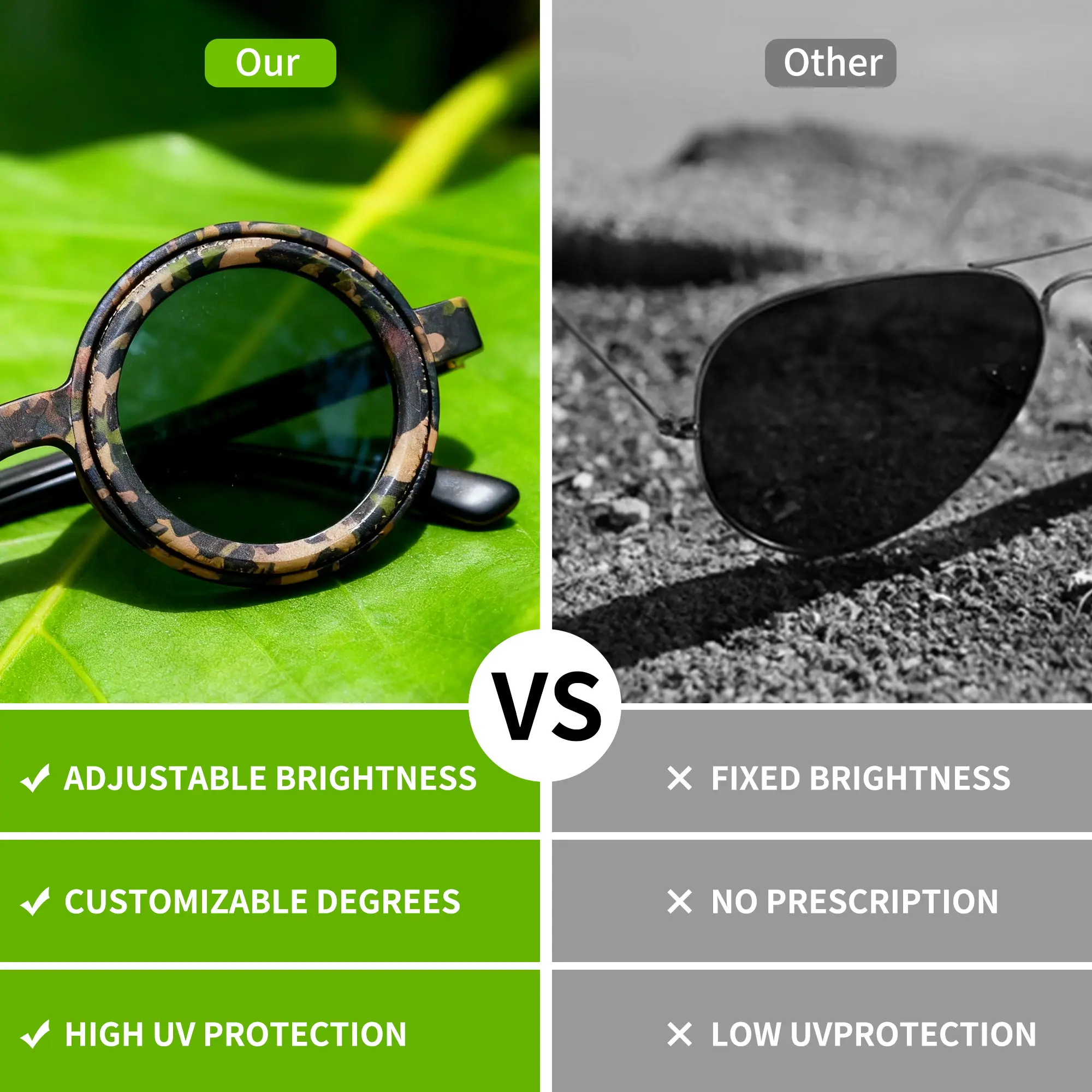 ·Advanced ND Filter Lenses: Adjustable Tint Sunglasses feature advanced ND filter lenses that provide crystal-clear vision and comprehensive eye protection across all environments