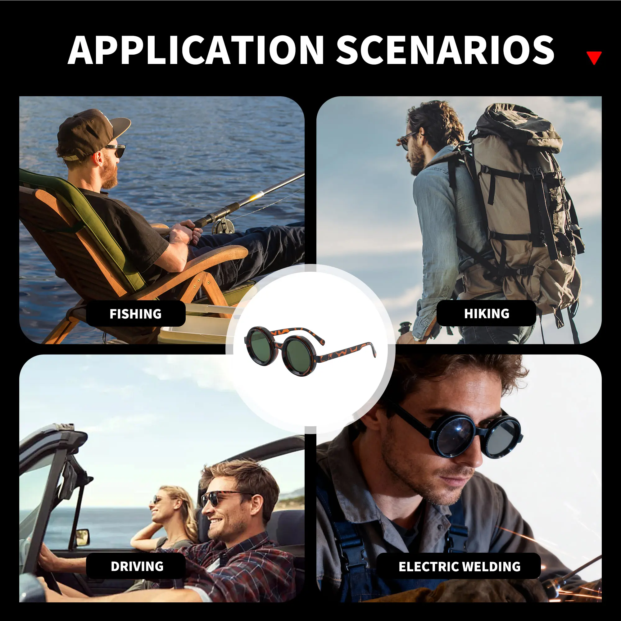 ·Stylish Round Polarized Design: Elevate your look with our meticulously crafted round polarized sunglasses that combine fashion and function, offering a timeless aesthetic to complement various outfit styles seamlessly