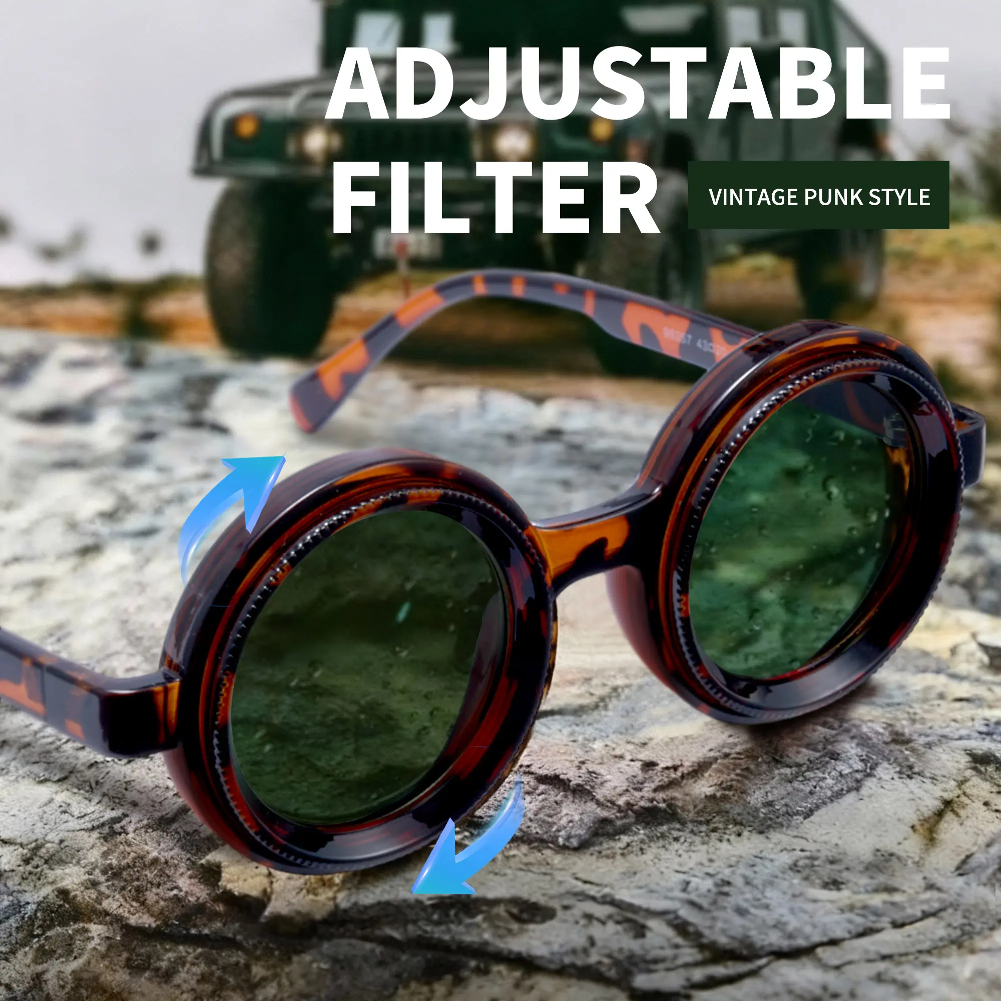【Black Friday】Cyxus Adjustable ND Filter Sunglasses with 9-Step Light Reduction Polarized UV400 Vintage Punk Style Unisex Shades for Outdoor Travel - P1323