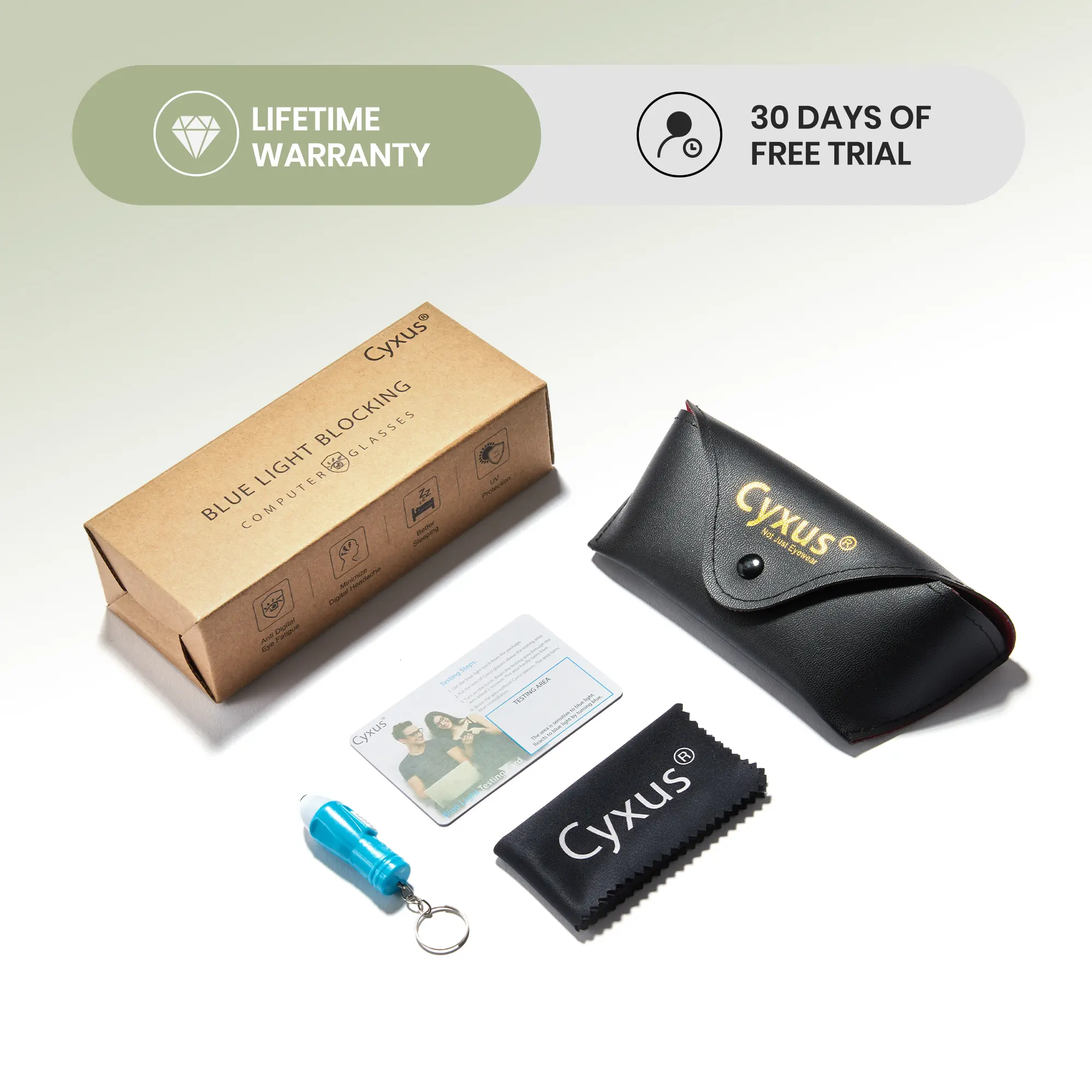 ·Blue light blocking and UV400 protection lenses: Cyxus has been manufacturing anti - blue light glasses since 2009. The self - developed anti - blue light lenses are added with various coatings, which can more effectively block 99% harmful blue light and UV400 from entering the eyes. Good for wearing eyeglasses for using computers, playing games, working on cellphones, etc.