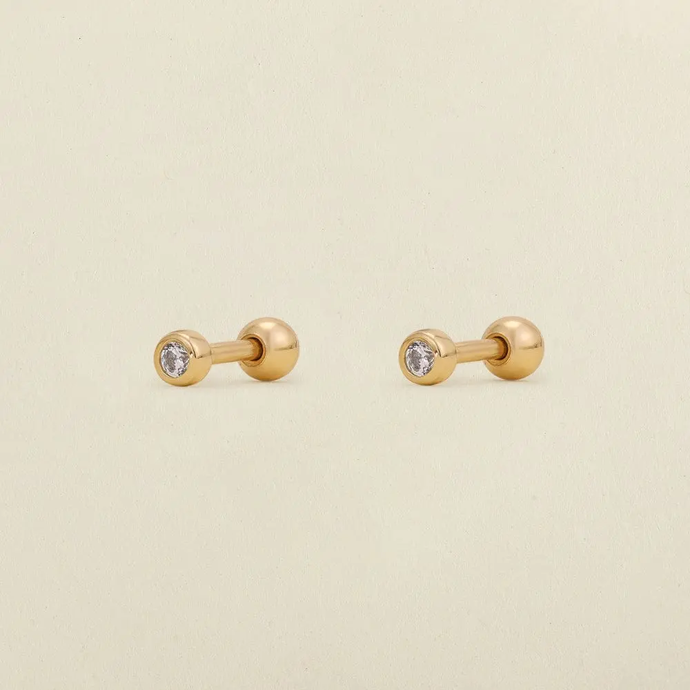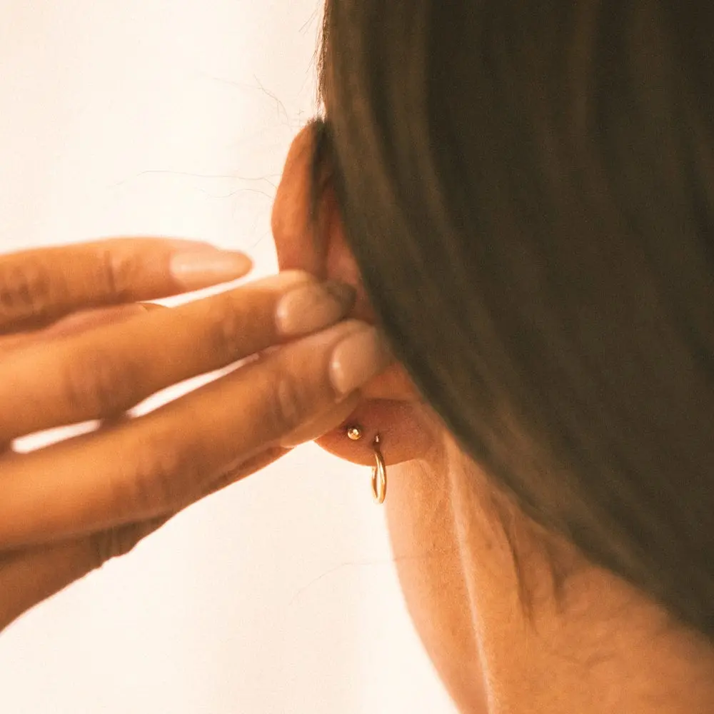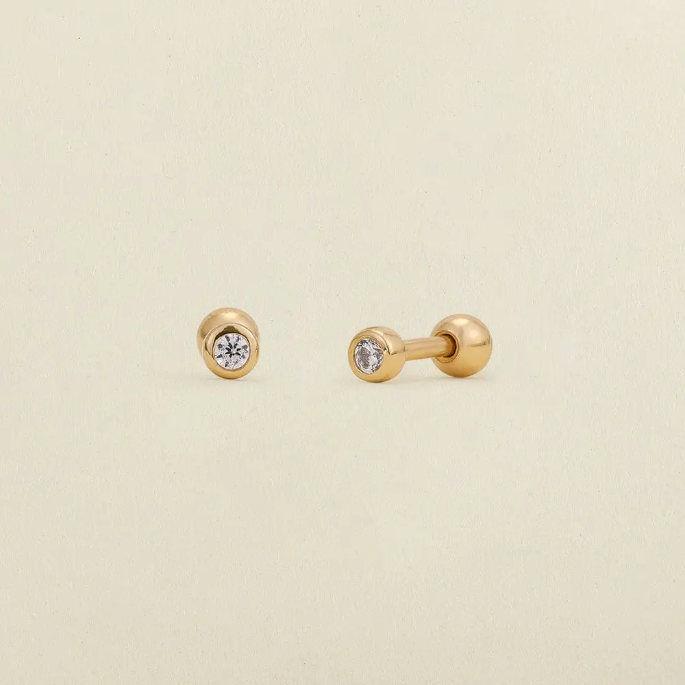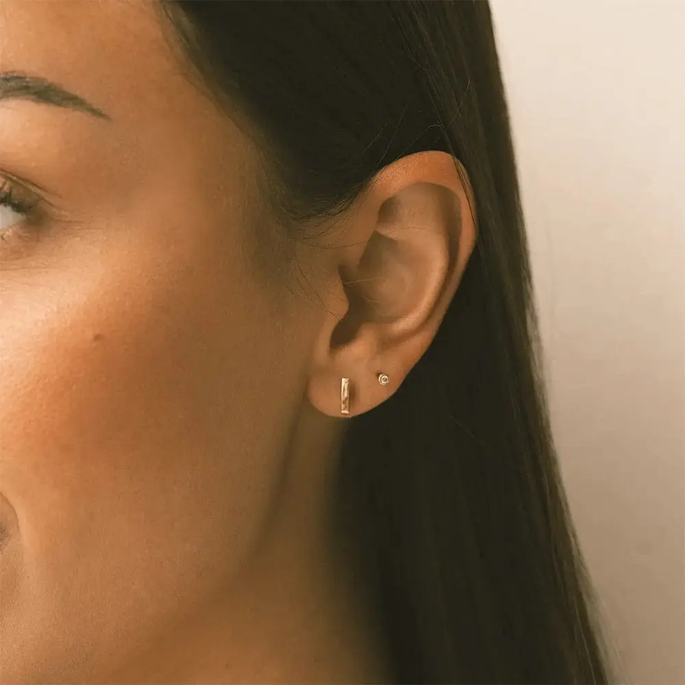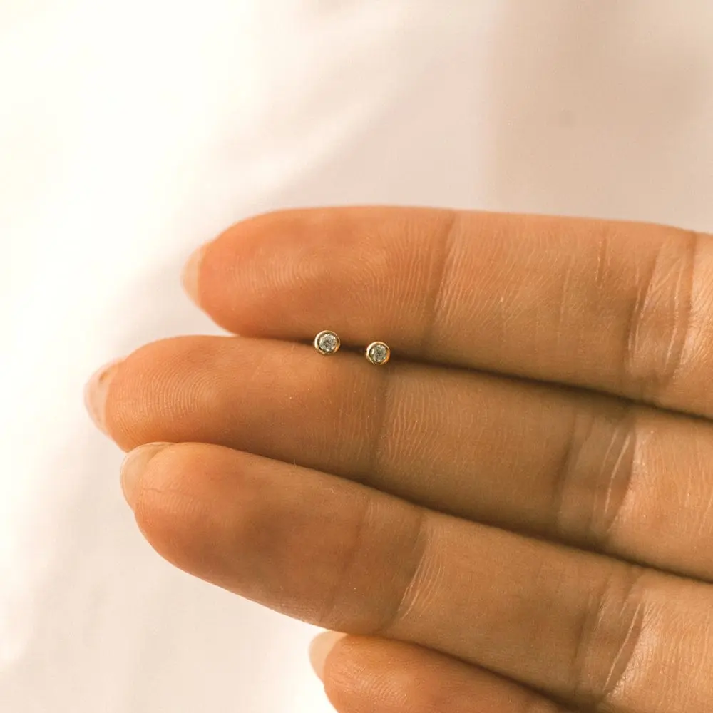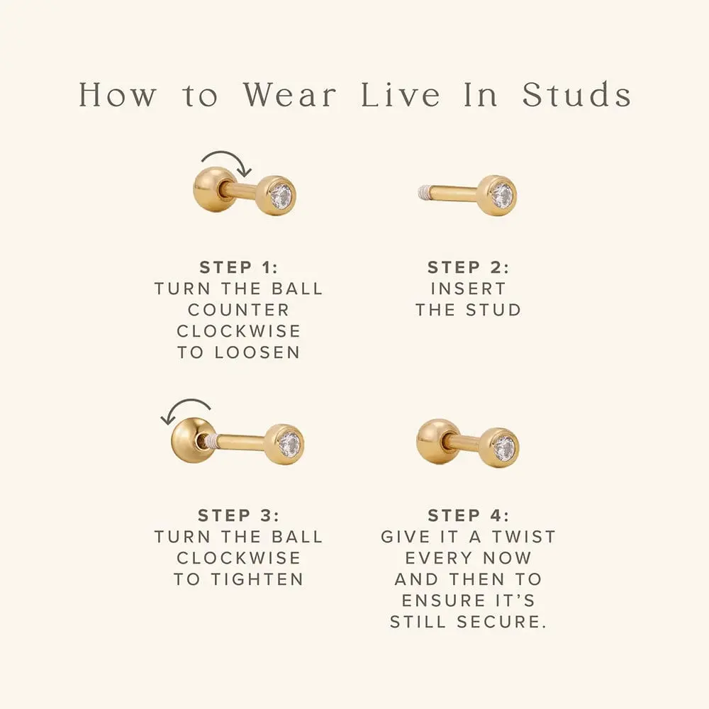 So cute and dainty! I wear them in my third hole. I like the gold border, it makes them more unique than your typical diamond stud. It was quite easy for me to screw on, if you’re used to screwing in cartilage piercings this will be easy for you too. I have worn in the shower, worked out in, and slept in (I just keep them in all the time), and they are just as shiny as when I first got them!