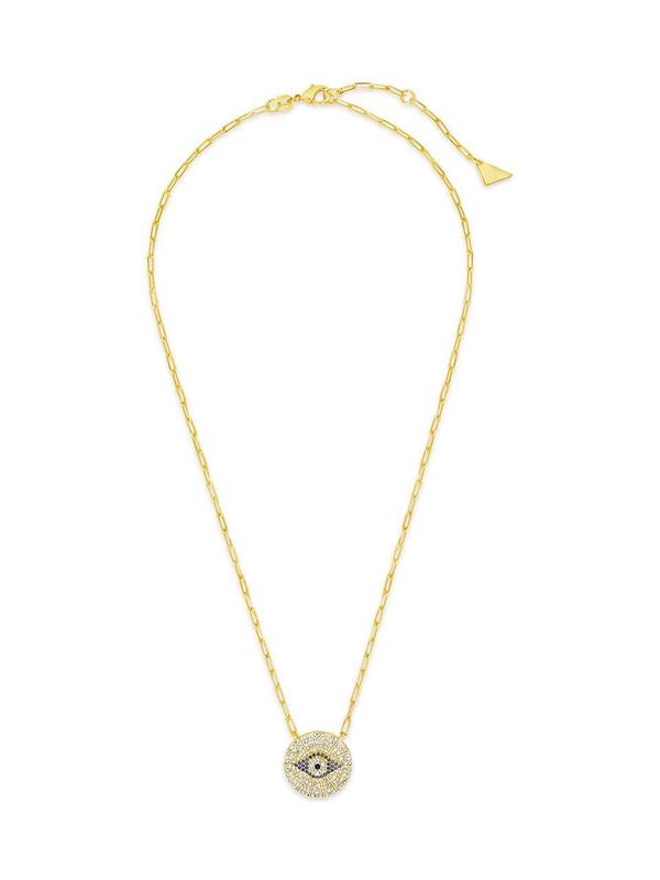 5. CZ Evil Eye Disk Pendant Necklace