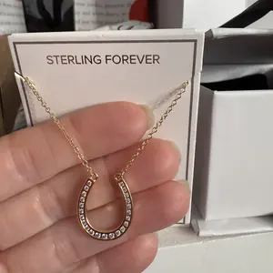 Absolutely beautiful necklace – bought it as a gift for my DIL who is a horse lover. Perfect size horseshoe with sparkly CZ diamonds and lovely butter yellow true 14k color gold plating.