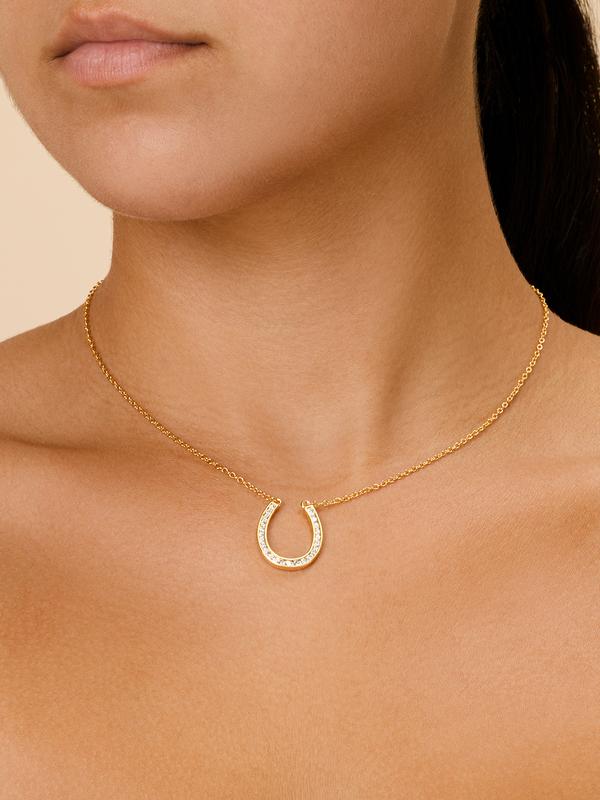 Good luck is sure to find you when you're wearing this necklace! It features an open horseshoe pendant that is studded with delicate CZ stones. This glam, dainty necklace is available in gold and silver tones.