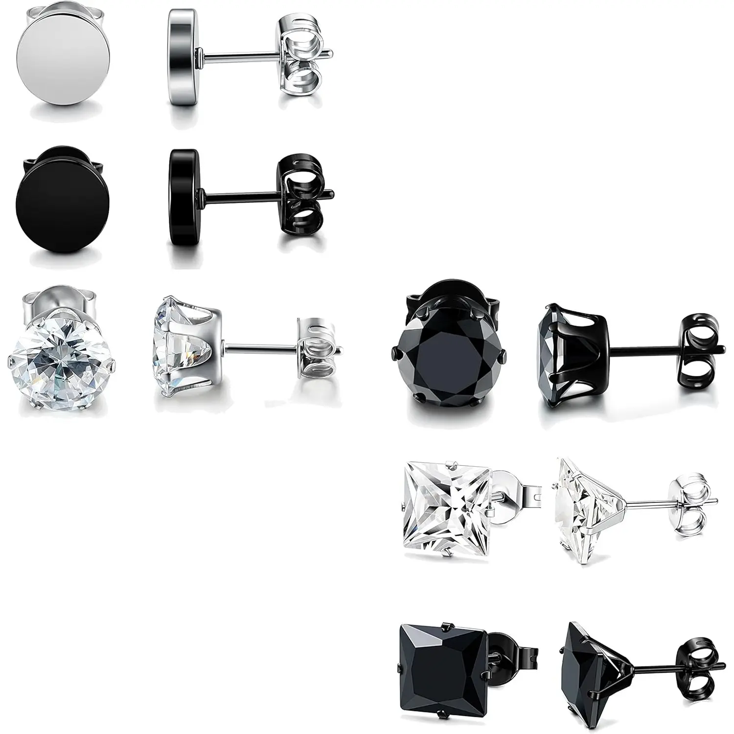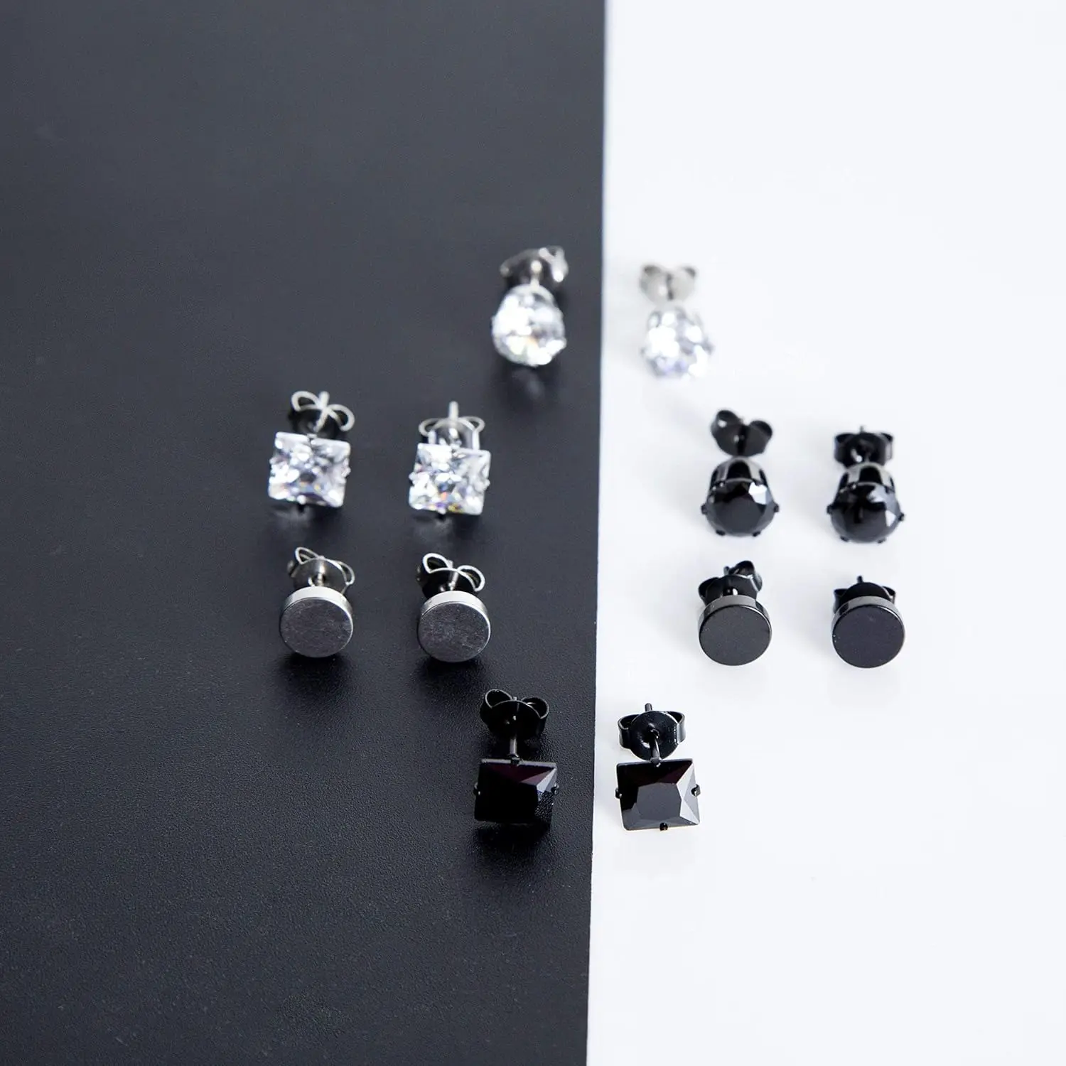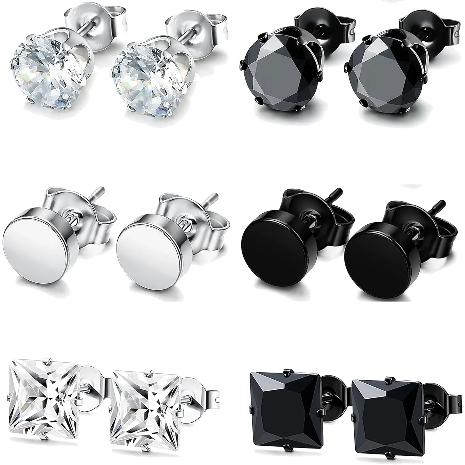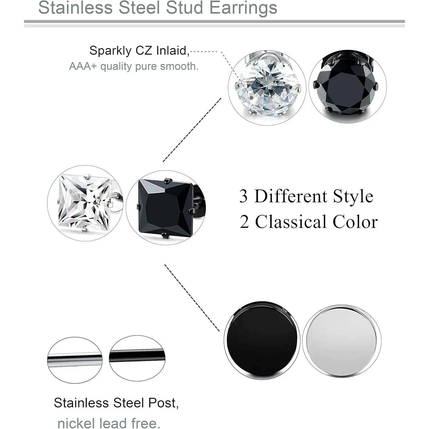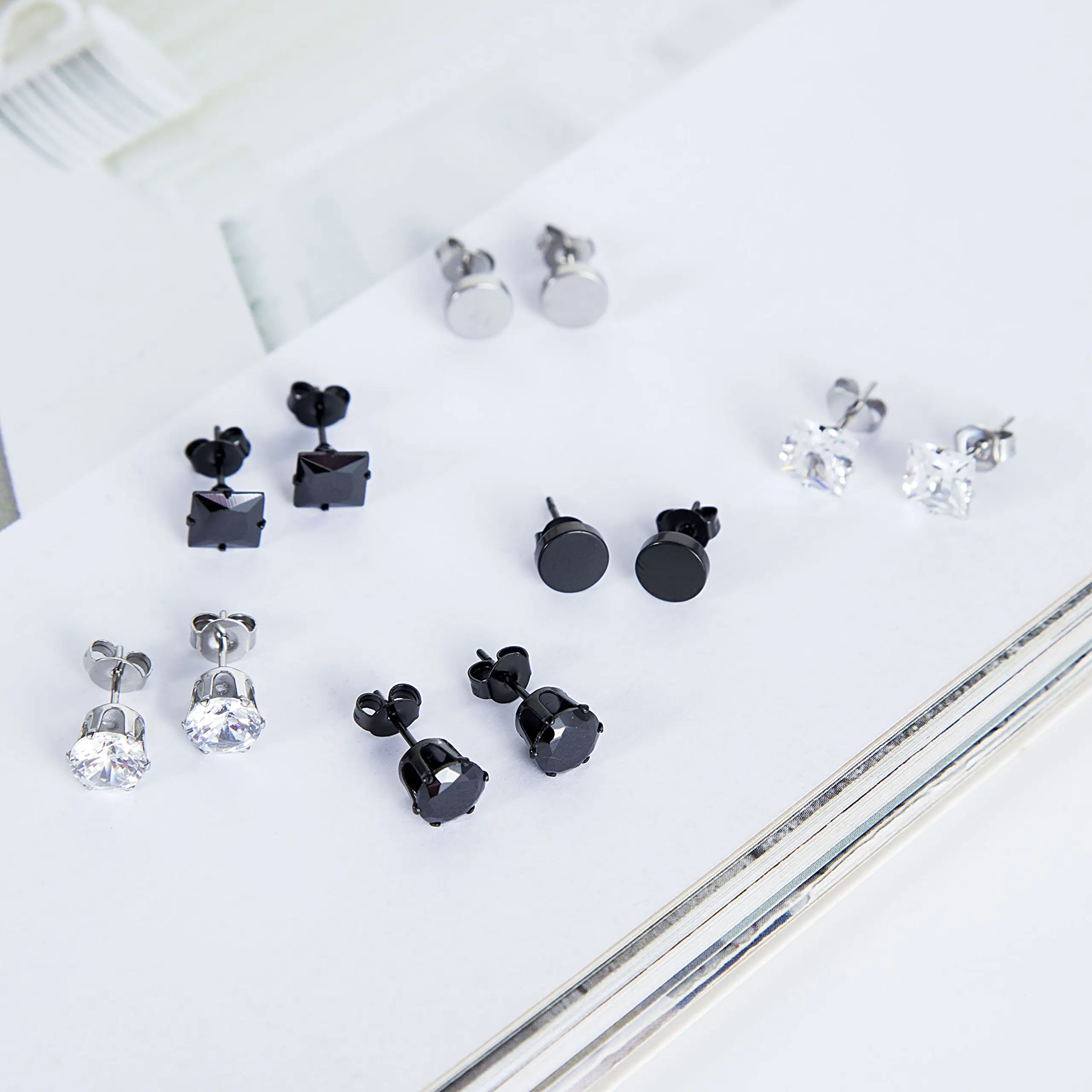 6 Pairs, 3 Stylish Designs Includes 6 pairs of stud earrings in 3 different styles (round zircon, round cake, square zircon). A versatile set to match your outfit every day.