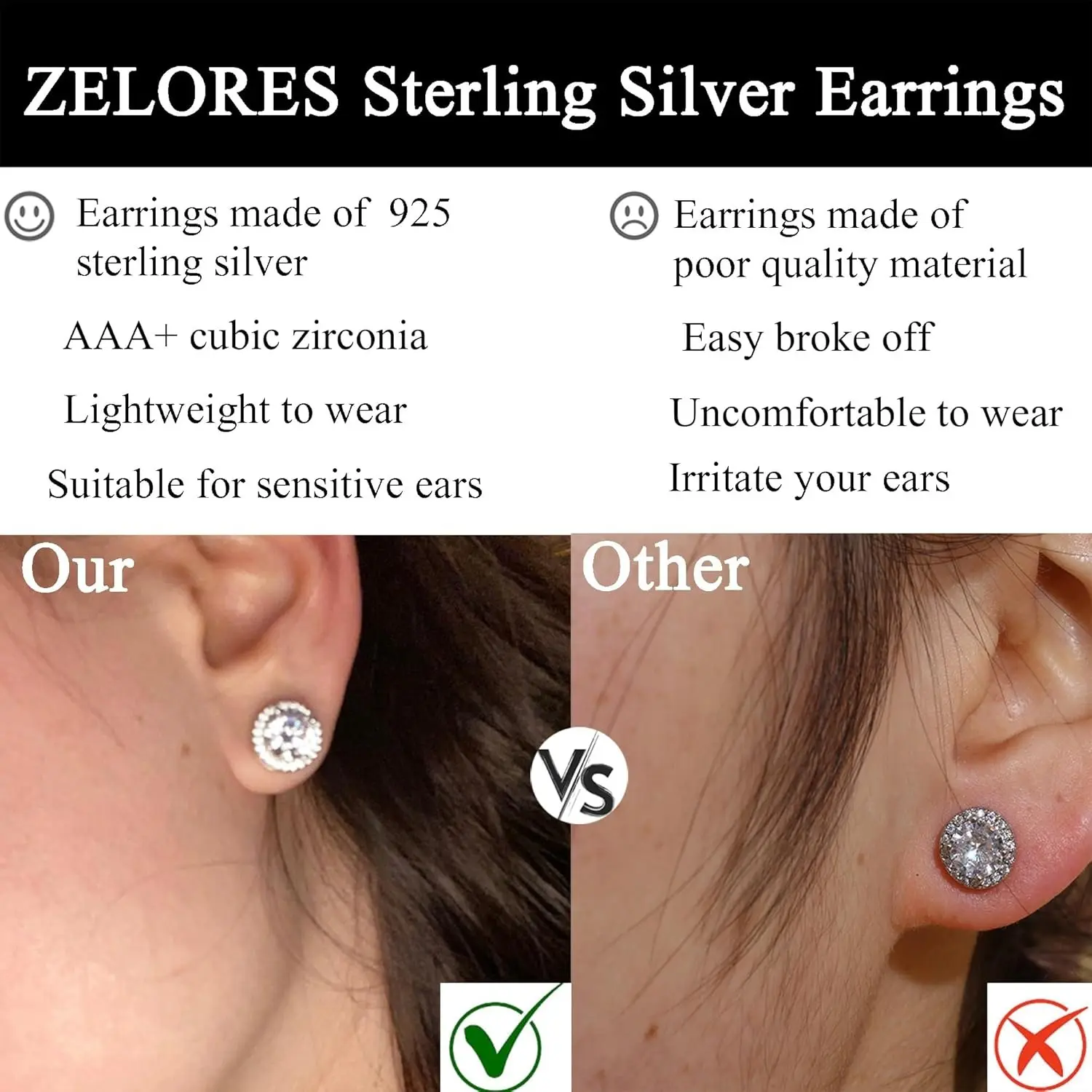 Crafted with 925 sterling silver post and plated in white gold, our earrings are not only stylish but also safe for sensitive skin.