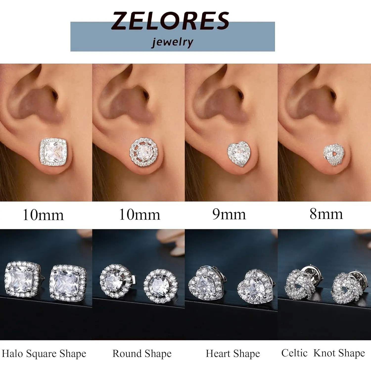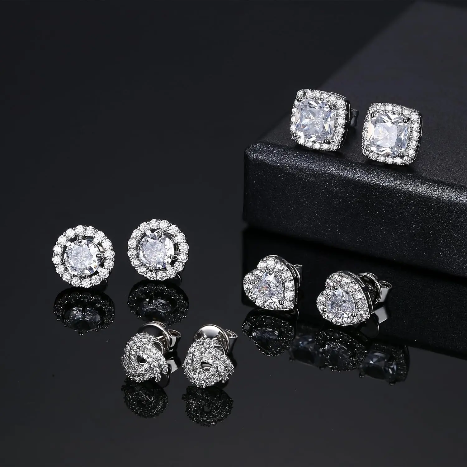 This set includes diverse styles: square, round, heart-shaped, and Celtic cz earrings, giving you the perfect pair for any occasion.