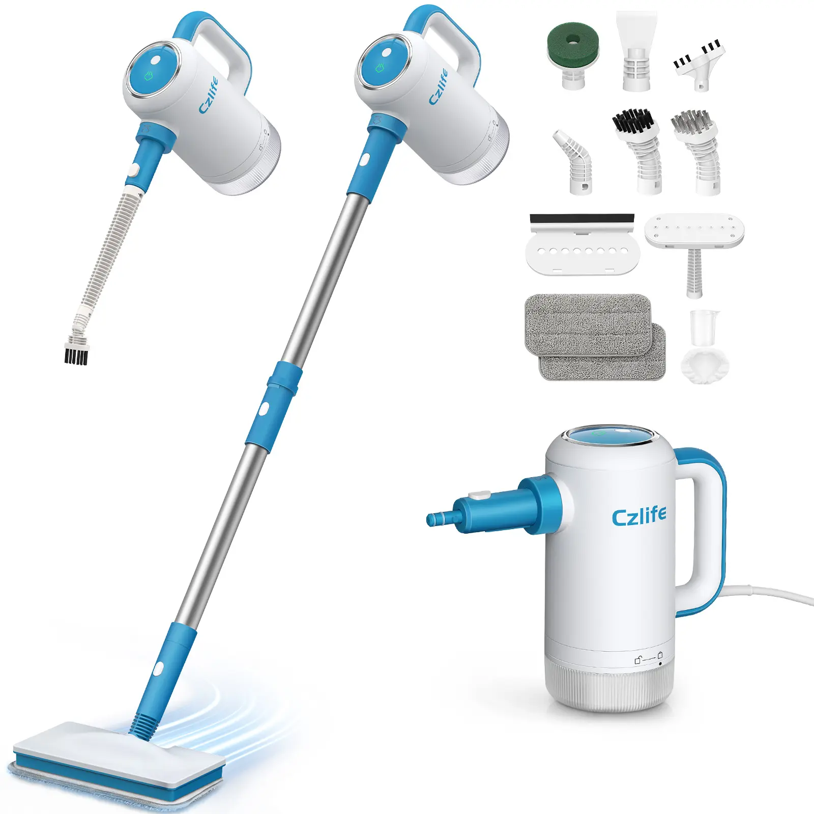 Versatile Steam Mop and Handheld Steam Cleaner: With an extension tube and a variety of brushes and nozzles, our all-in-one steam cleaner effectively tackles stains on floors, windows, stoves, grills, furniture, couches, and more. Providing a sparkling clean solution for deep cleaning in living room, kitchen, bathroom, and car