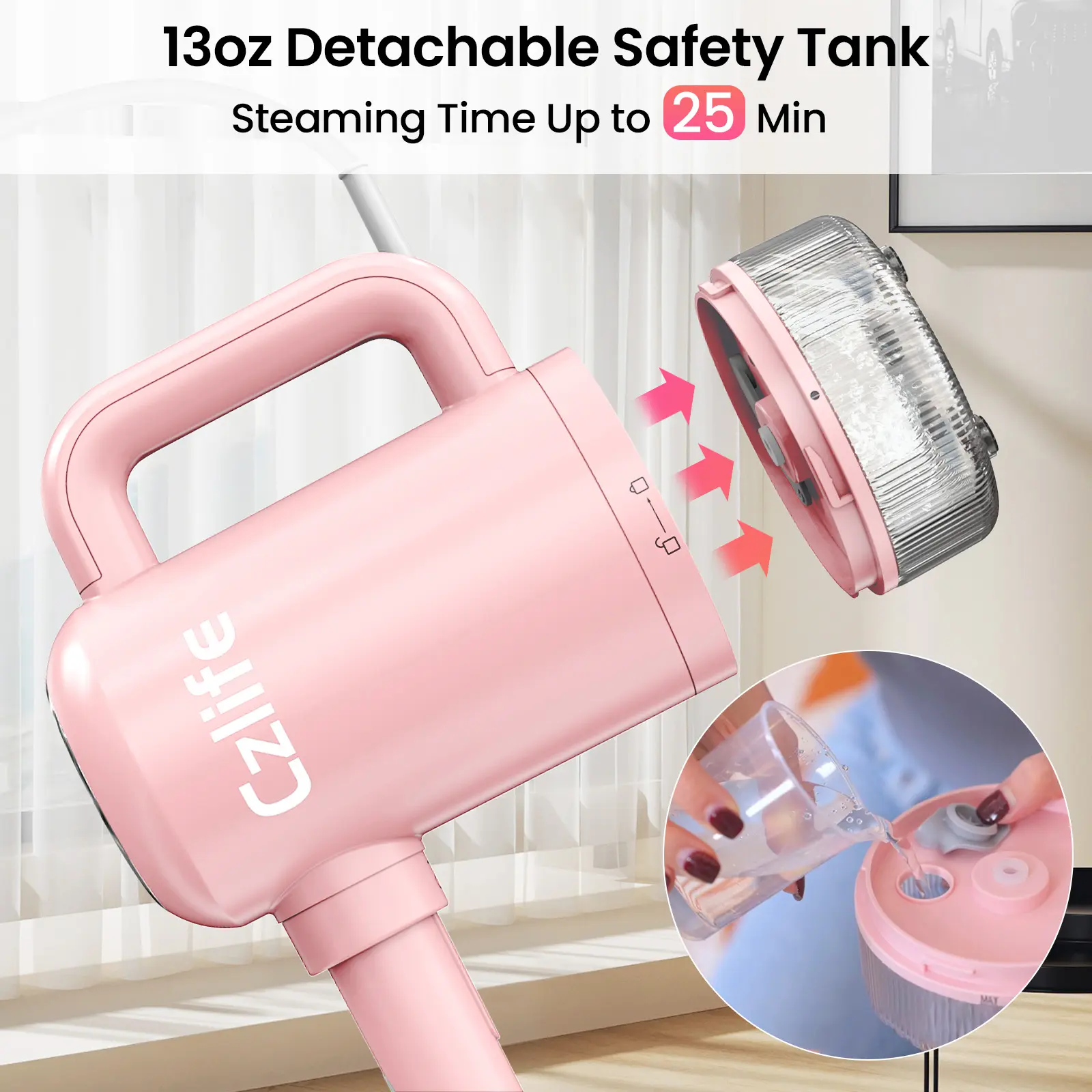 Smart Detachable Water Tank: The detachable design makes refills easy. This 13oz (370ml) water tank offers up to 25 minutes of continuous cleaning. Equipped with with a smart water level detection and anti-dry burn protection for safe and reliable operation