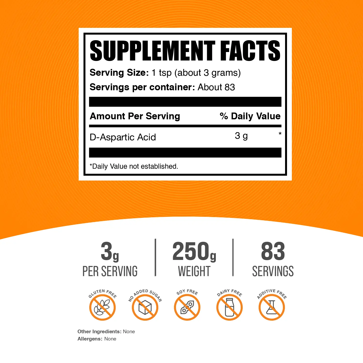 Experience the transformative vitality with D-Aspartic Acid powder by BulkSupplements, a powerhouse in the world of amino acids. Its clarity is a testament to pure, immaculate quality, encapsulating a drive for excellence that's palpable from the very first encounter. Elevate your routine with this bold addition, tailored for those who demand the best in their quest for greatness.
