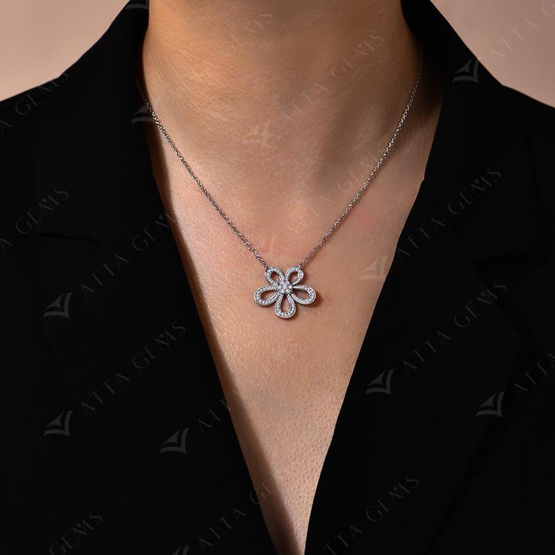 Flower Shape D Color Synthetic Moissanite Necklace  Fashion design for Women Girls Romantic Gift Fine Jewelry N034