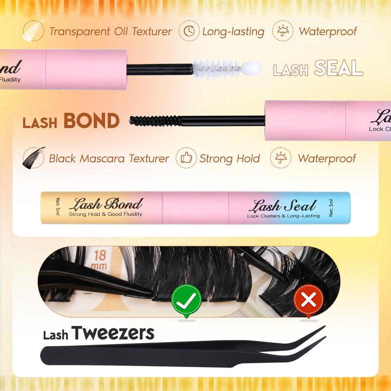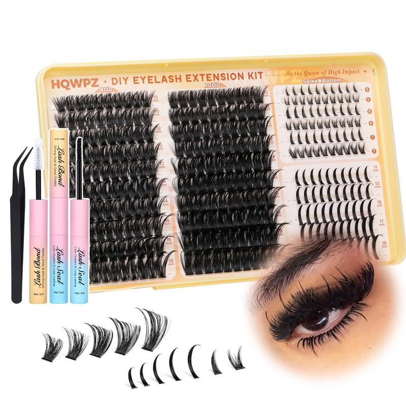 Contain:100 Pcs 80D Lash Clusters;100 Pcs 100D Lash Clusters;50Pcs Spike Lashes;60 Pcs Bottom Lash CLusters;2 IN 1 Lash Bond and Seal;1 Lash Applicator