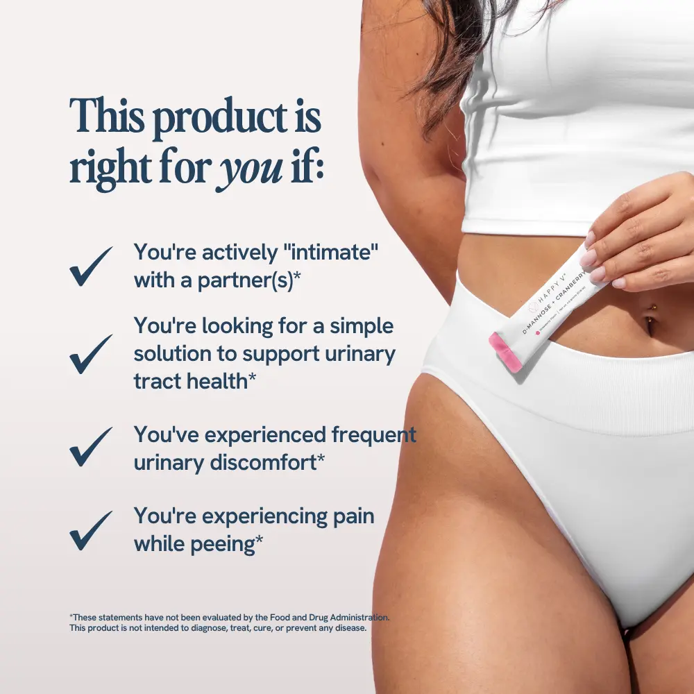 #UrinaryHealth #UTIPrevention #Dmannose #CranberryExtract #HappyV #WomensWellness #IntimateCare #TravelEssentials #FeelGoodInsideOut #OnTheGoHealth