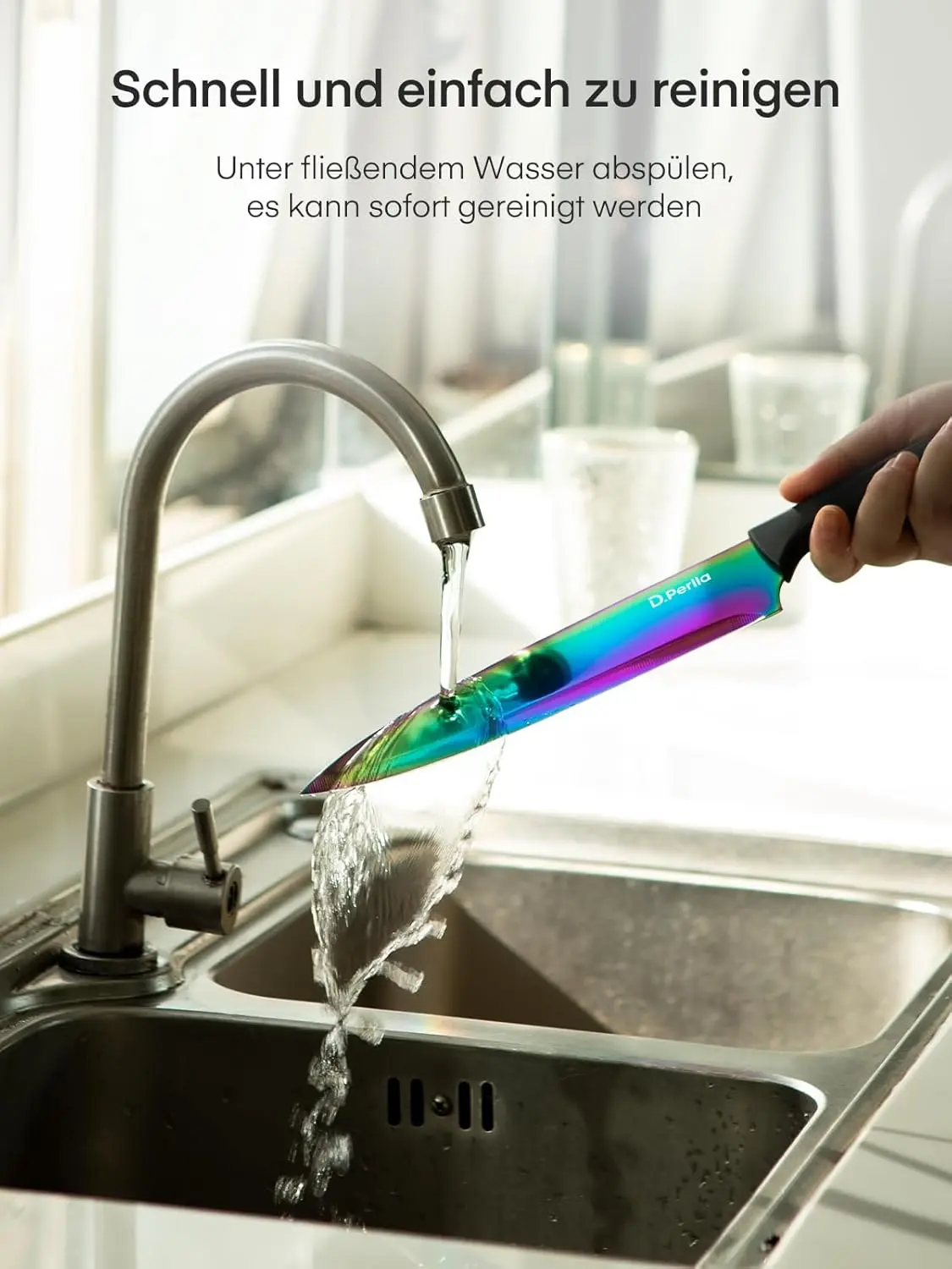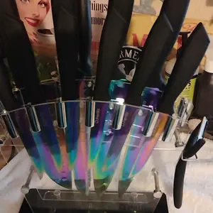 ·STYLISH KNIFE SET The clear acrylic stand and rainbow knife set are cool and elegant, and fit in both modern and traditional kitchens. The hollow knife stand is easy to wash, no stains remain. The flat acrylic stand is space-saving. With this transparent acrylic stand, you can clearly find out the knife you need