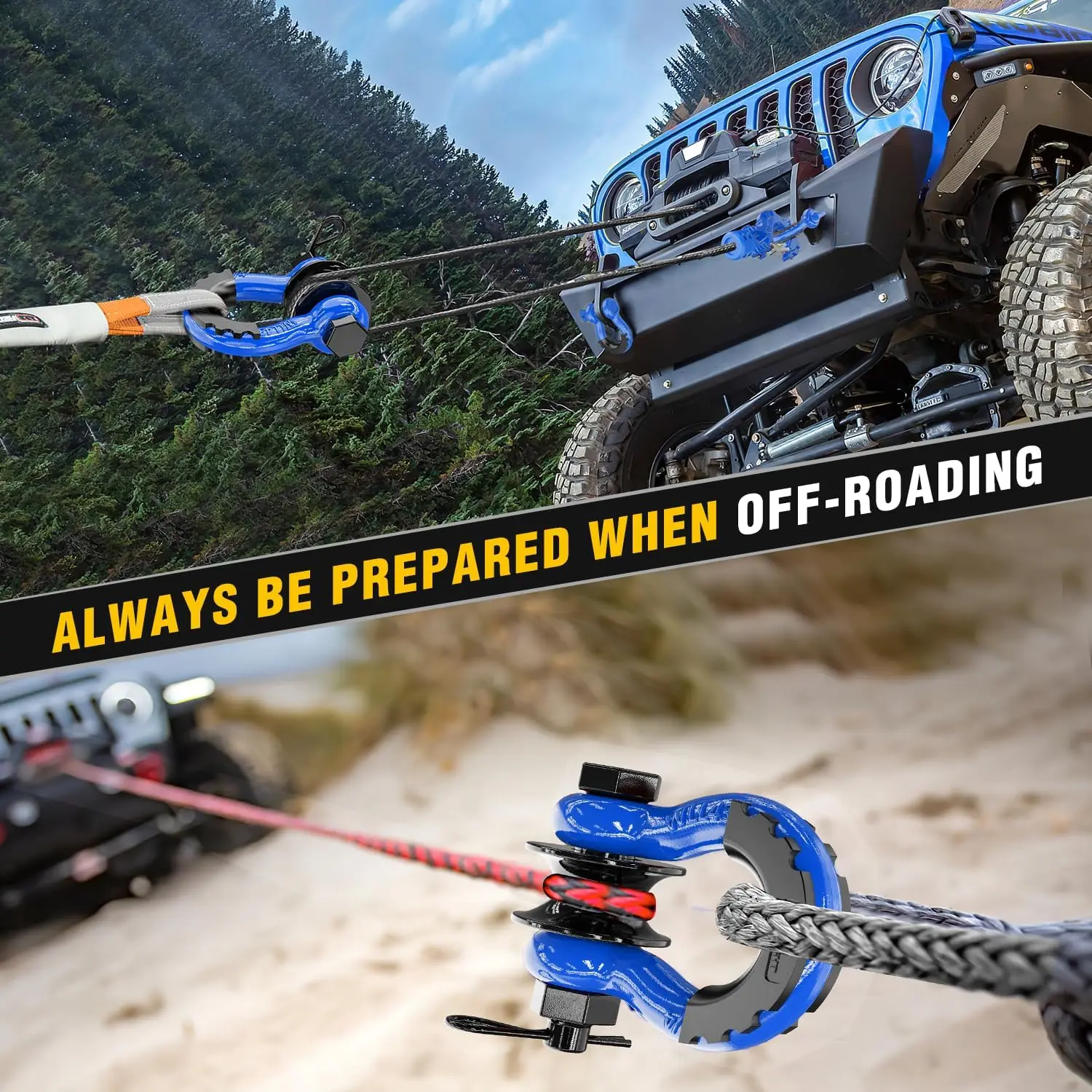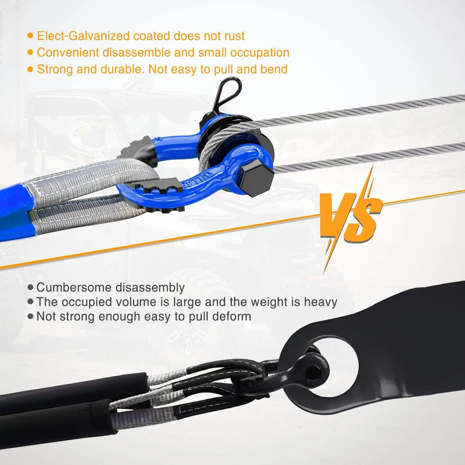 ·【 UNIVERSAL D RING SHACKLES 】 - 3/4" d-ring shackles 4.75 Ton (9,500 Lbs),with a Towing Pulley, an Industry Standard 7/8" Screw Pin , and an outer nut that avoids fall. The insurance pin provides additional protection.