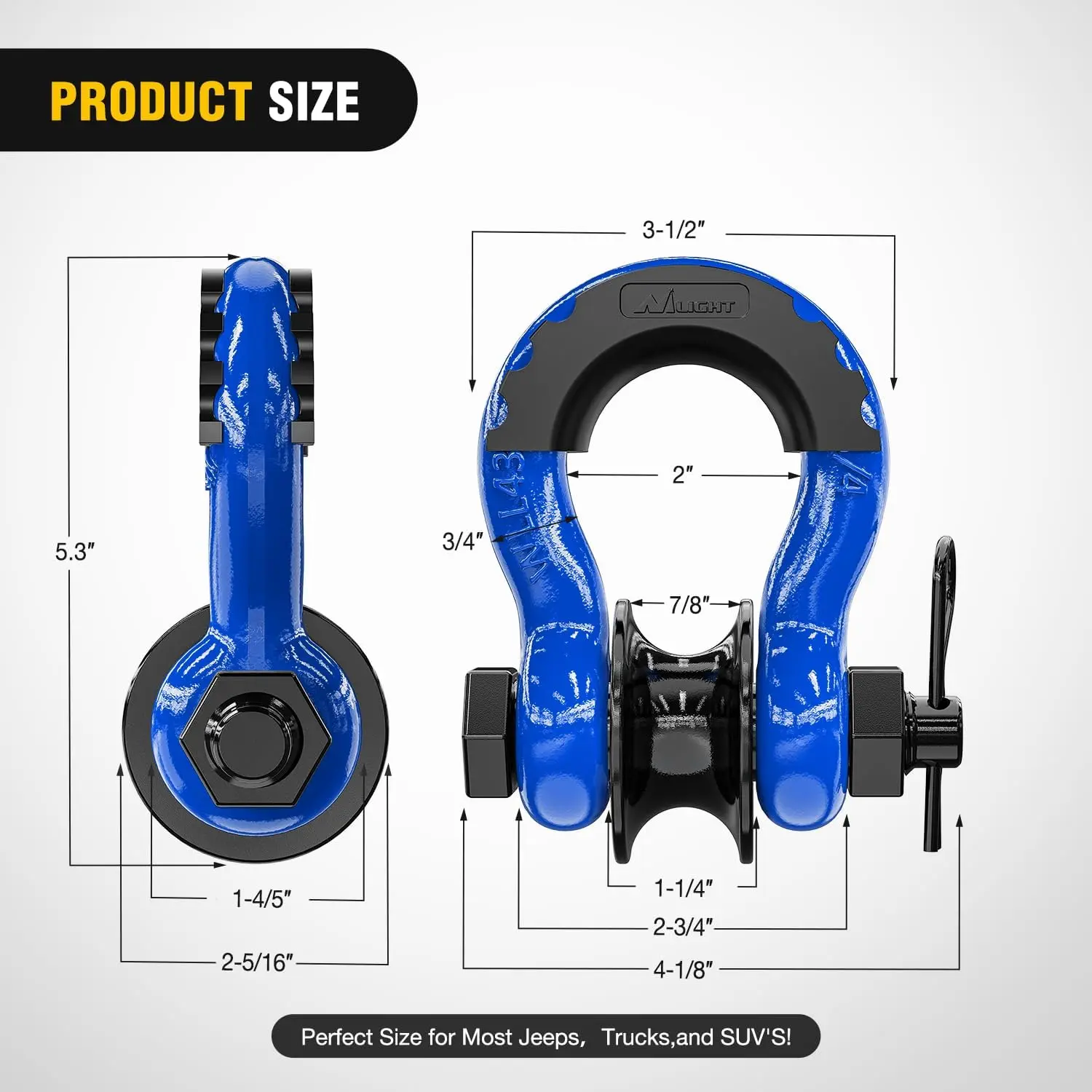 Nilight 3/4" D Ring Shackle with Towing Pulley