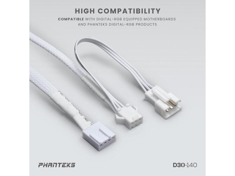 5. Phanteks D30-140 DRGB PWM FAN, Premium D-RGB Performance Fan, ARGB/DRGB lighting, Daisy-chain Fan Linking system, White