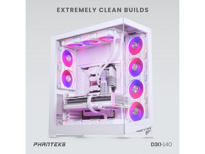 Phanteks D30-140 DRGB PWM FAN, Premium D-RGB Performance Fan, ARGB/DRGB lighting, Daisy-chain Fan Linking system, White