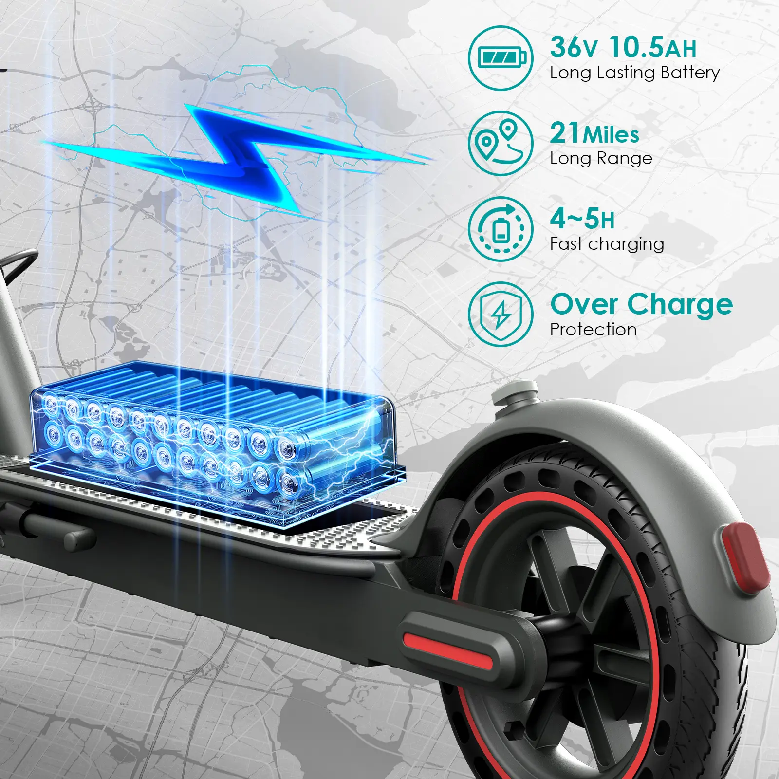 ·350W Brushless Motor – Delivers efficient power for smooth acceleration and stable performance, ideal for city commutes.