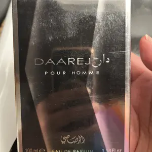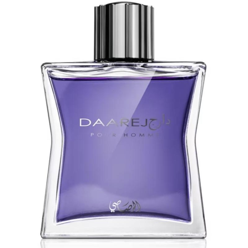 DAAREJ by Rasasi is a 3.4oz(100ml) perfume for men. The bottle is a 100ml Eau de Parfum. The packaging is black and silver. This perfume is a 3.4oz(100ml) bottle. It is a 3.4oz(100ml) Eau de Parfum. The perfume is a 3.4oz(100ml) bottle. It is a 3.4oz(100ml) Eau de Parfum.